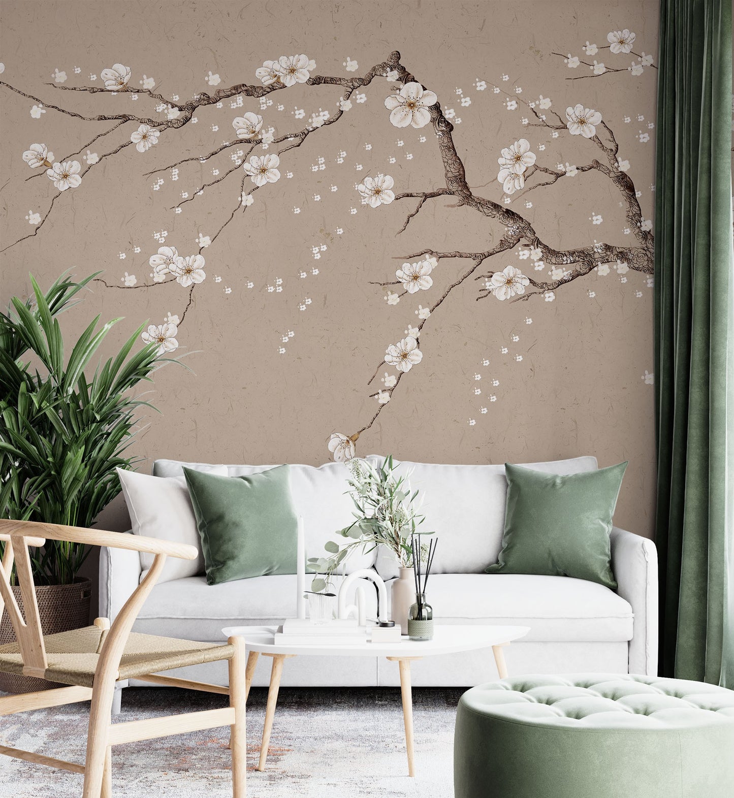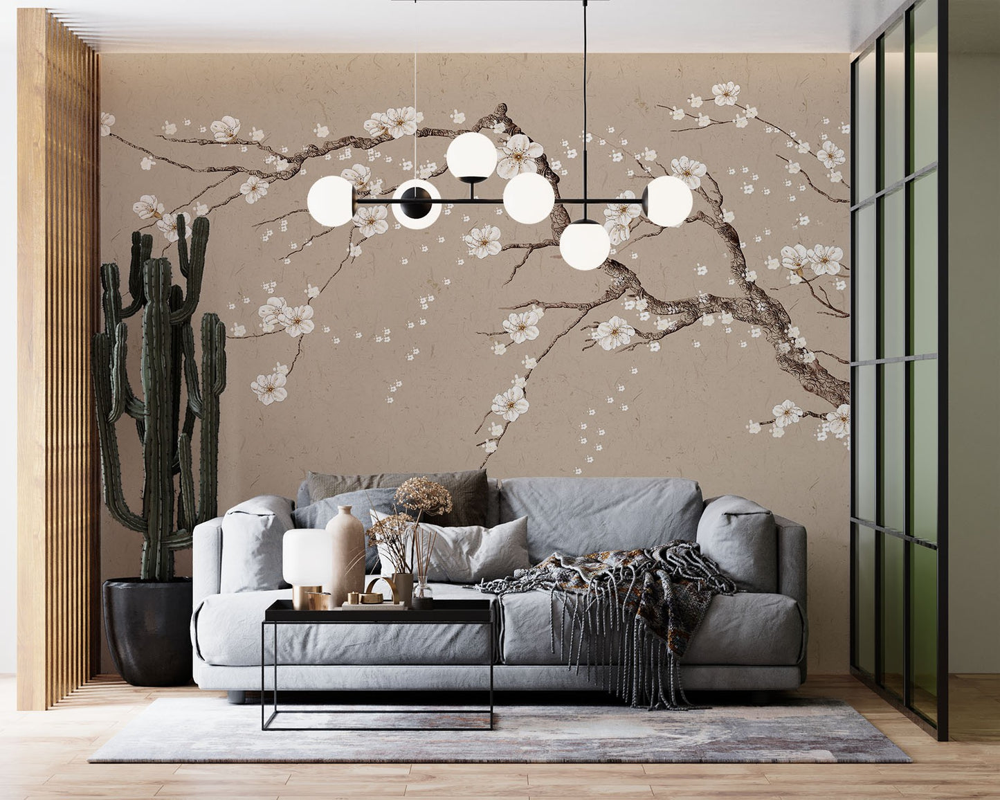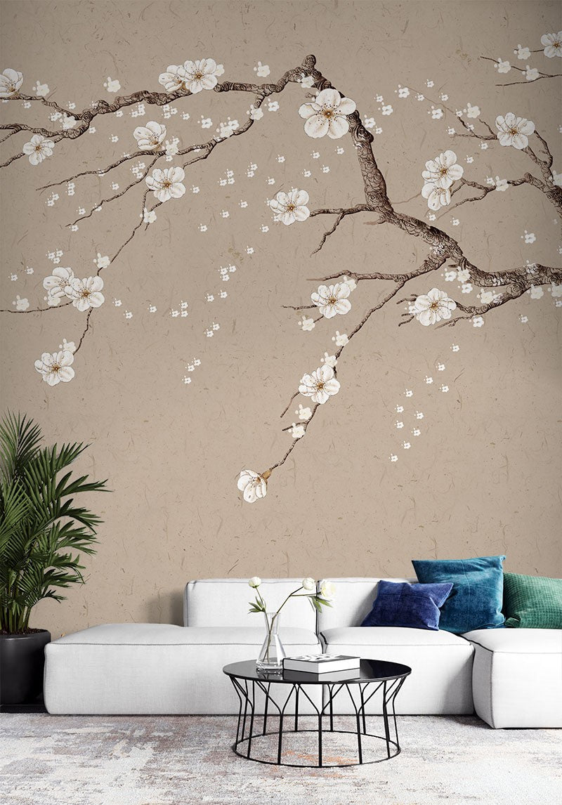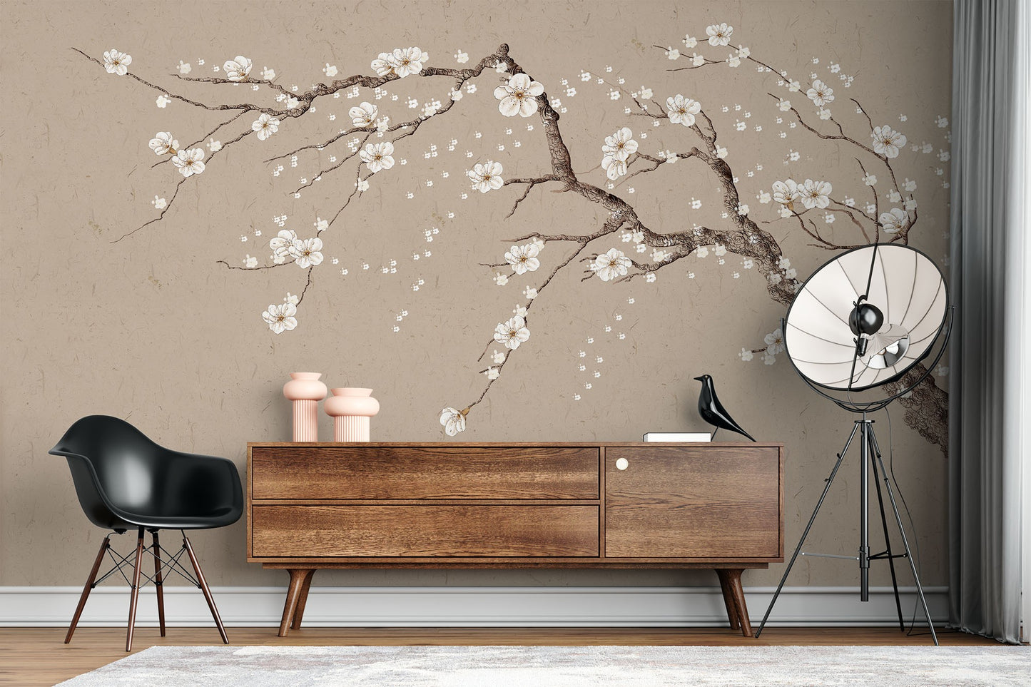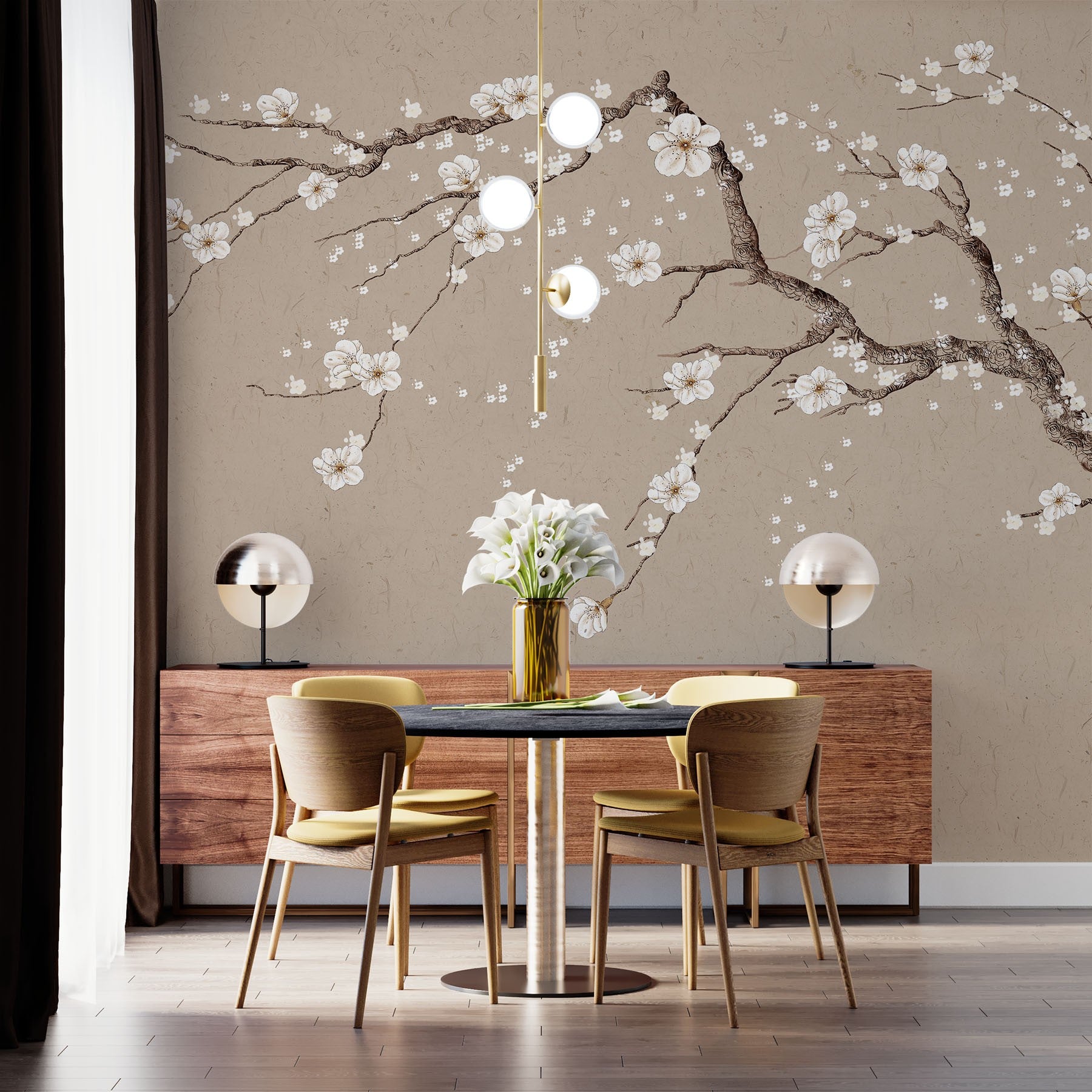 Meticulous Tree Art Chinoiserie Creamy Wallpaper Mural