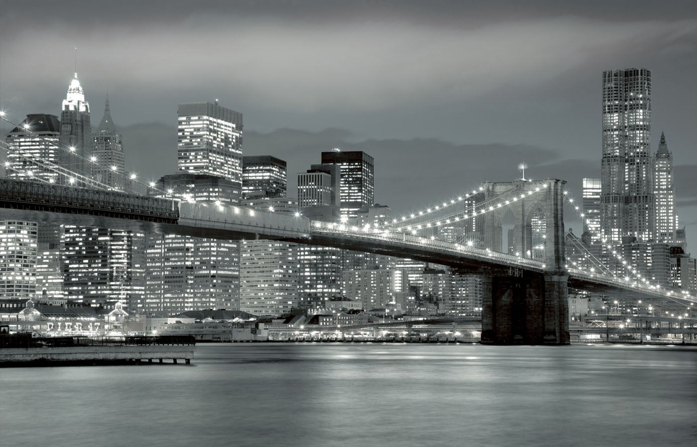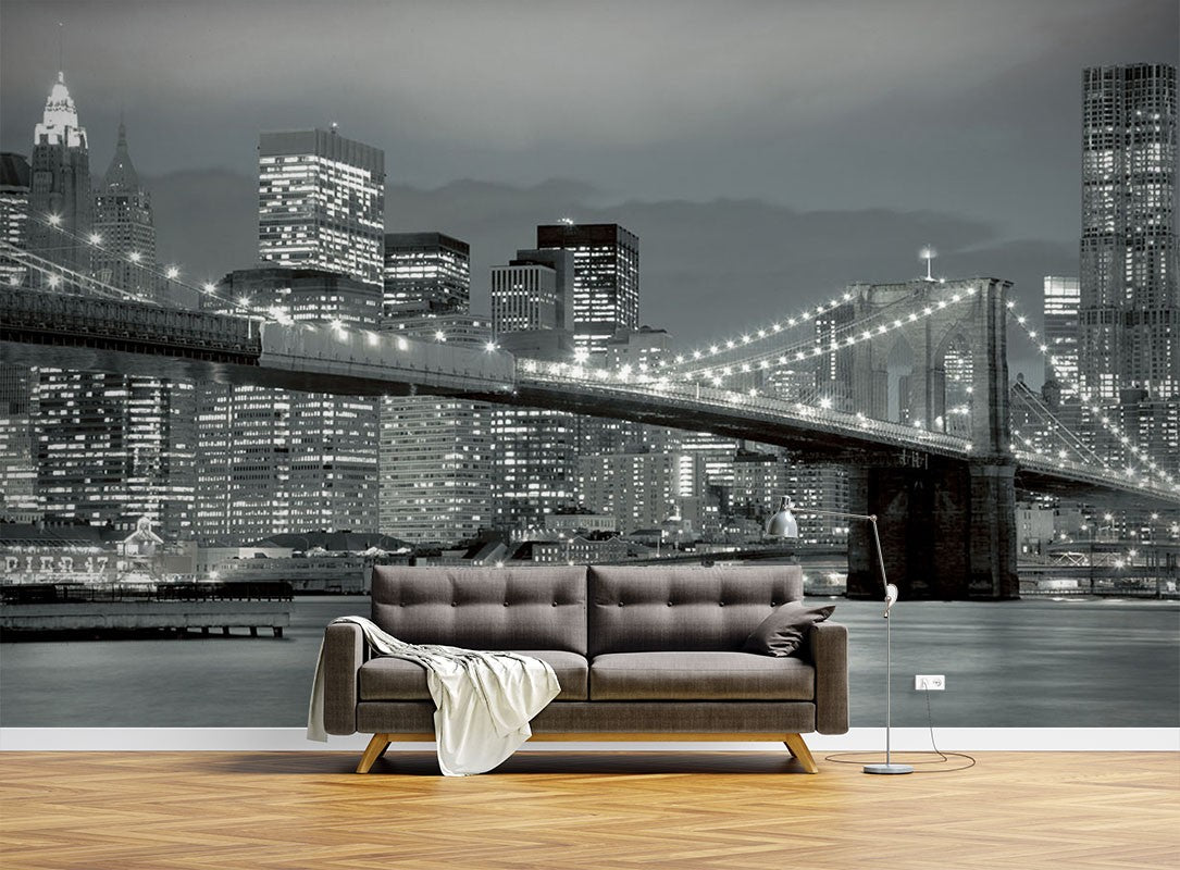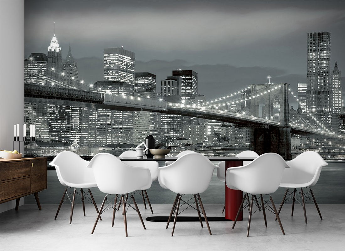Metropolis City Landmarks Black&White Wallpaper Mural,Self-Adhesive Peel And Stick 3D Wall Art,Removable Bedroom Wall Decor