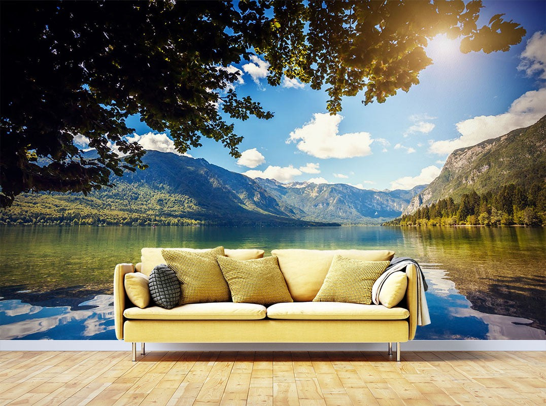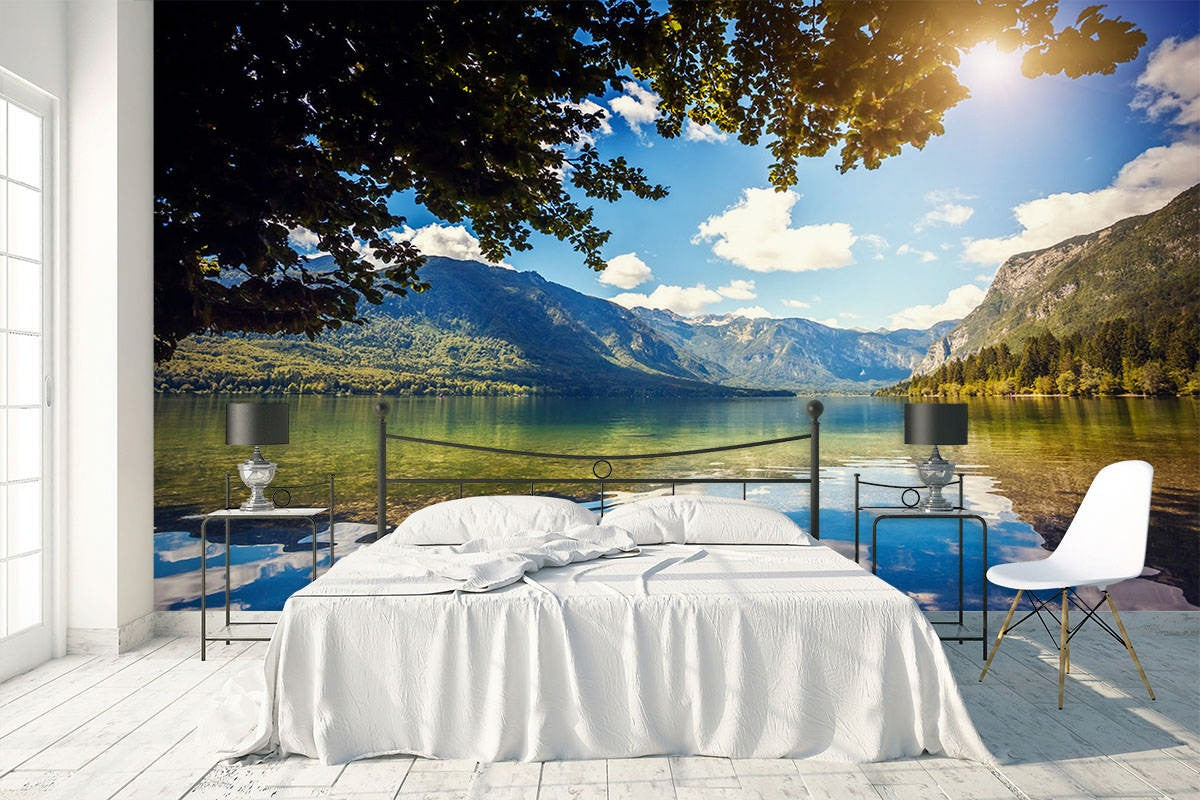 Mirror Like Nature Lakes Blue Wallpaper Mural,Self-Adhesive Peel And Stick 3D Wall Art,Bedroom Removable Wall Decor