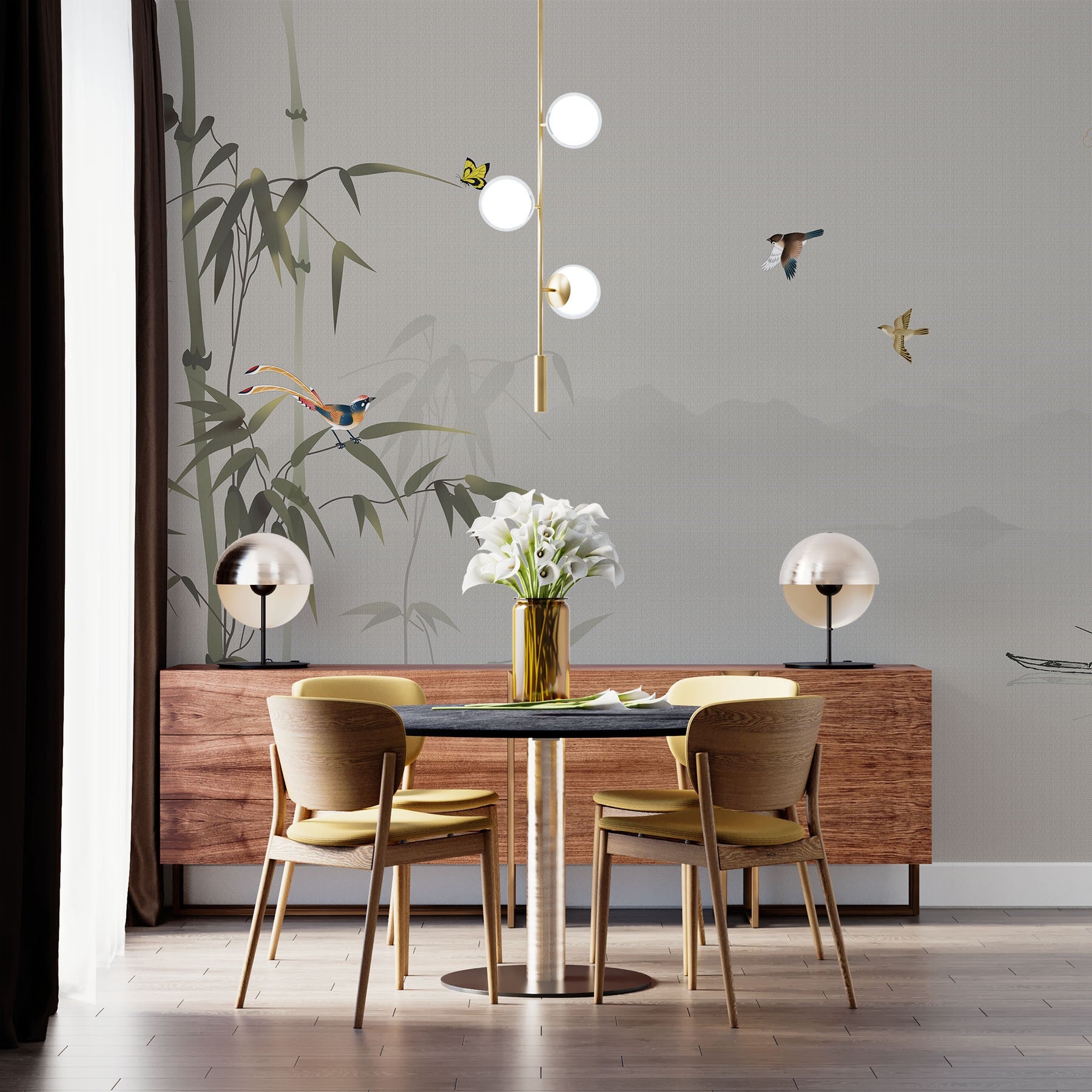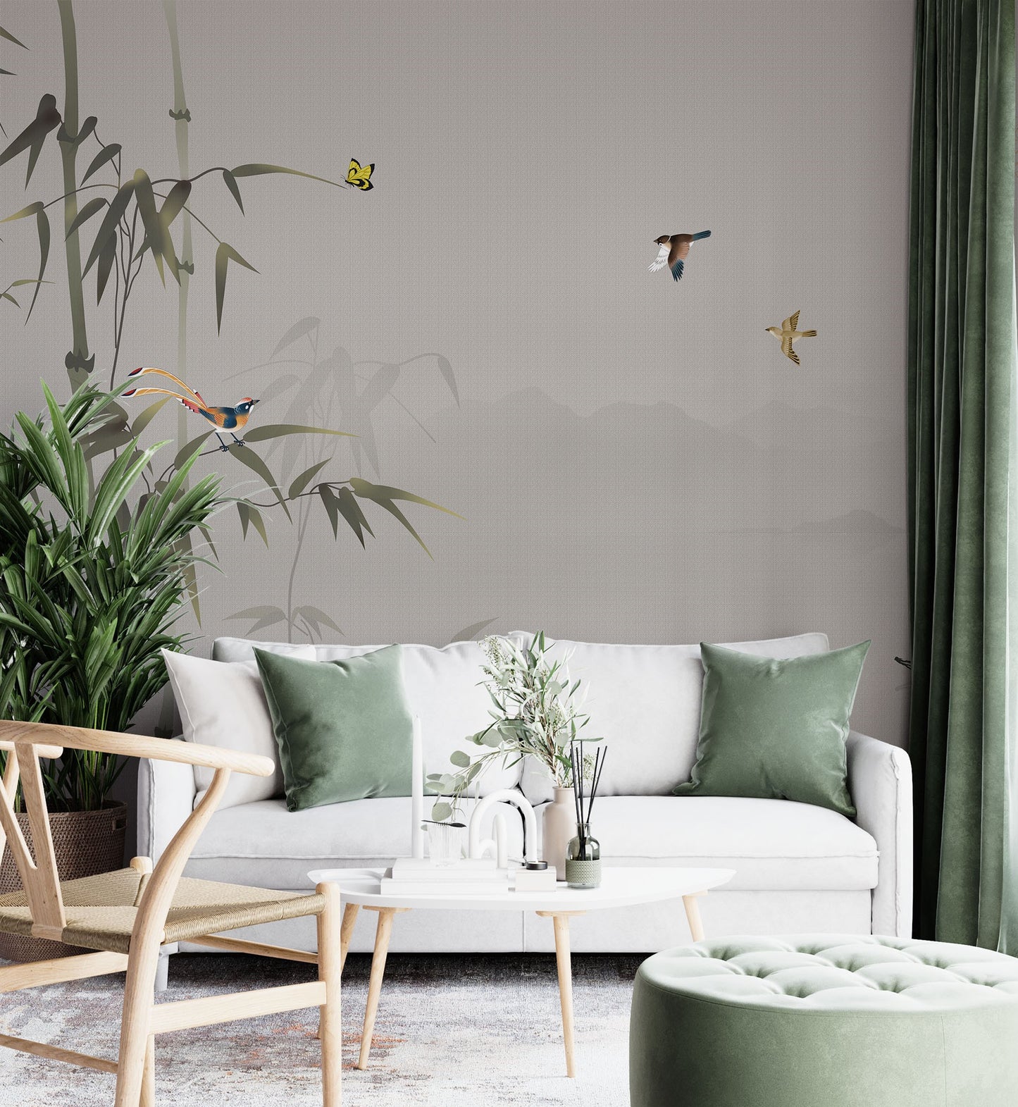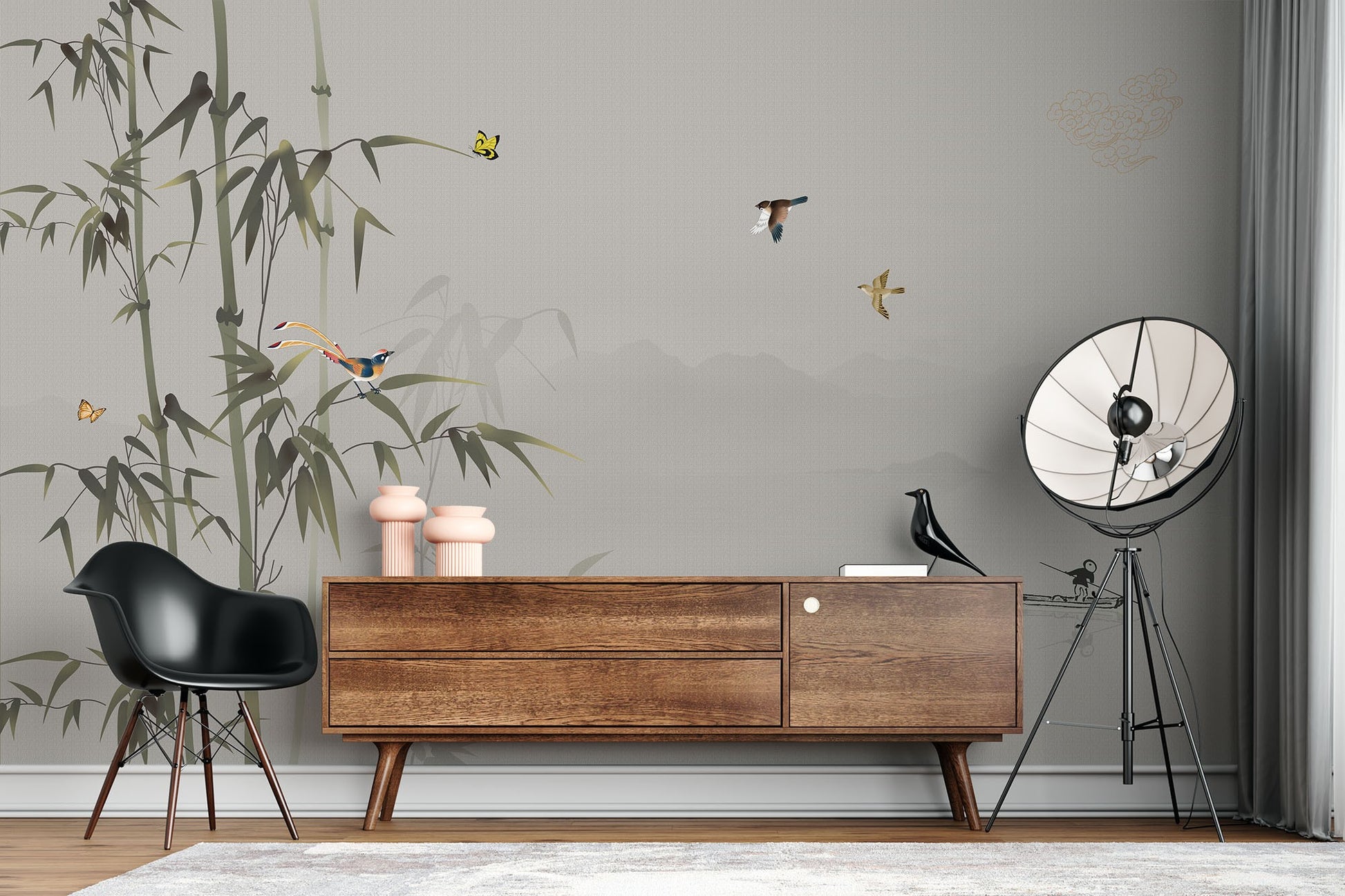 Misty Bamboo Art Chinoiserie Green Wallpaper Mural