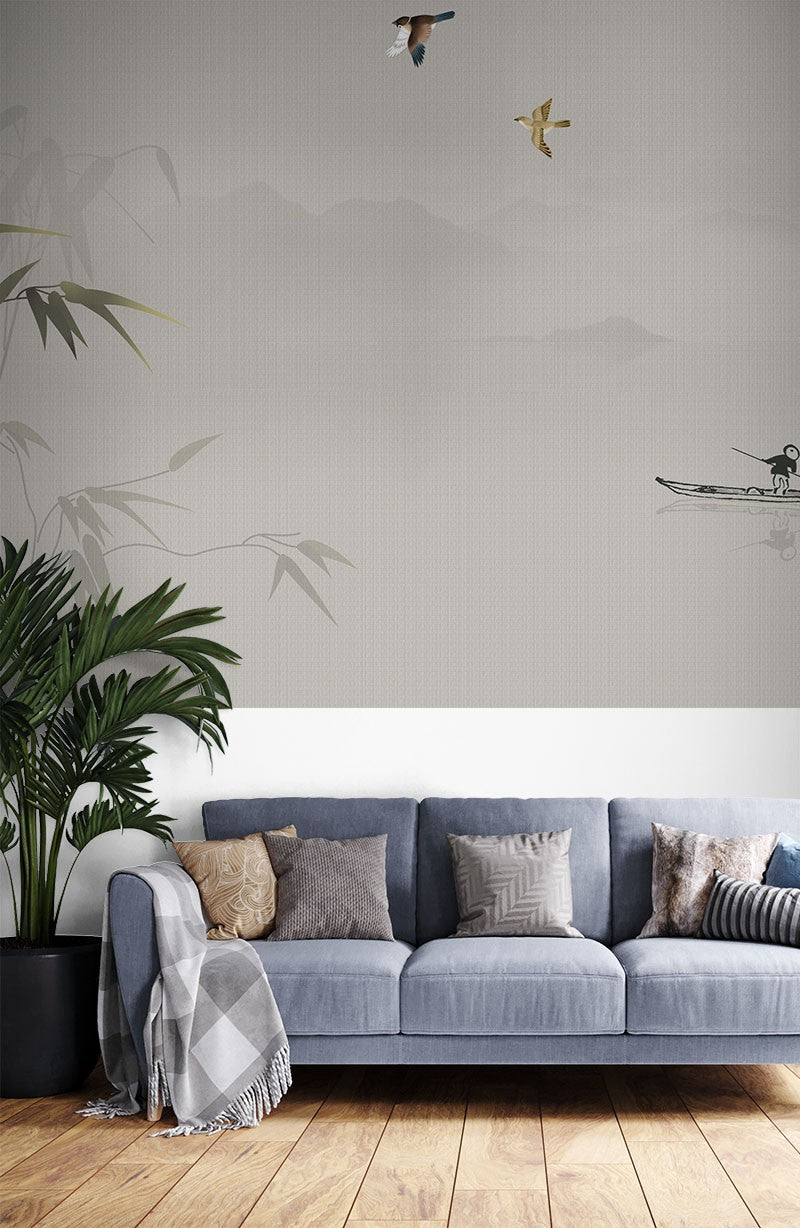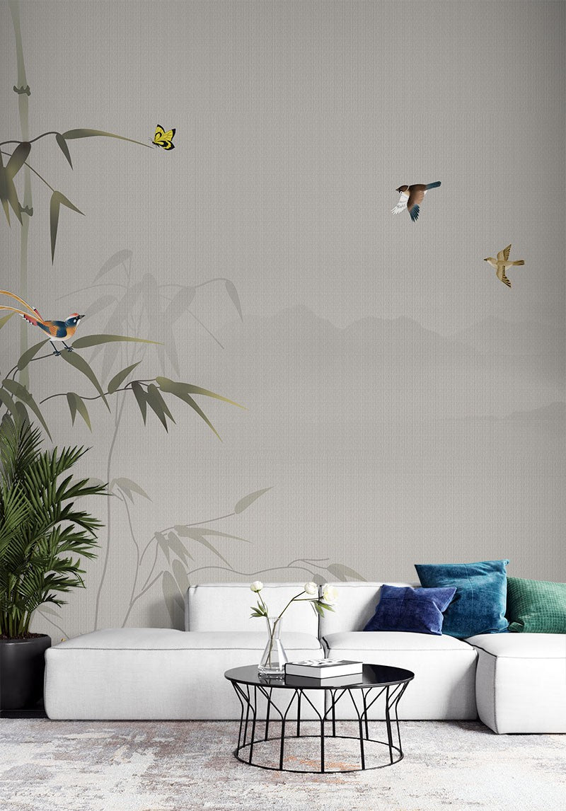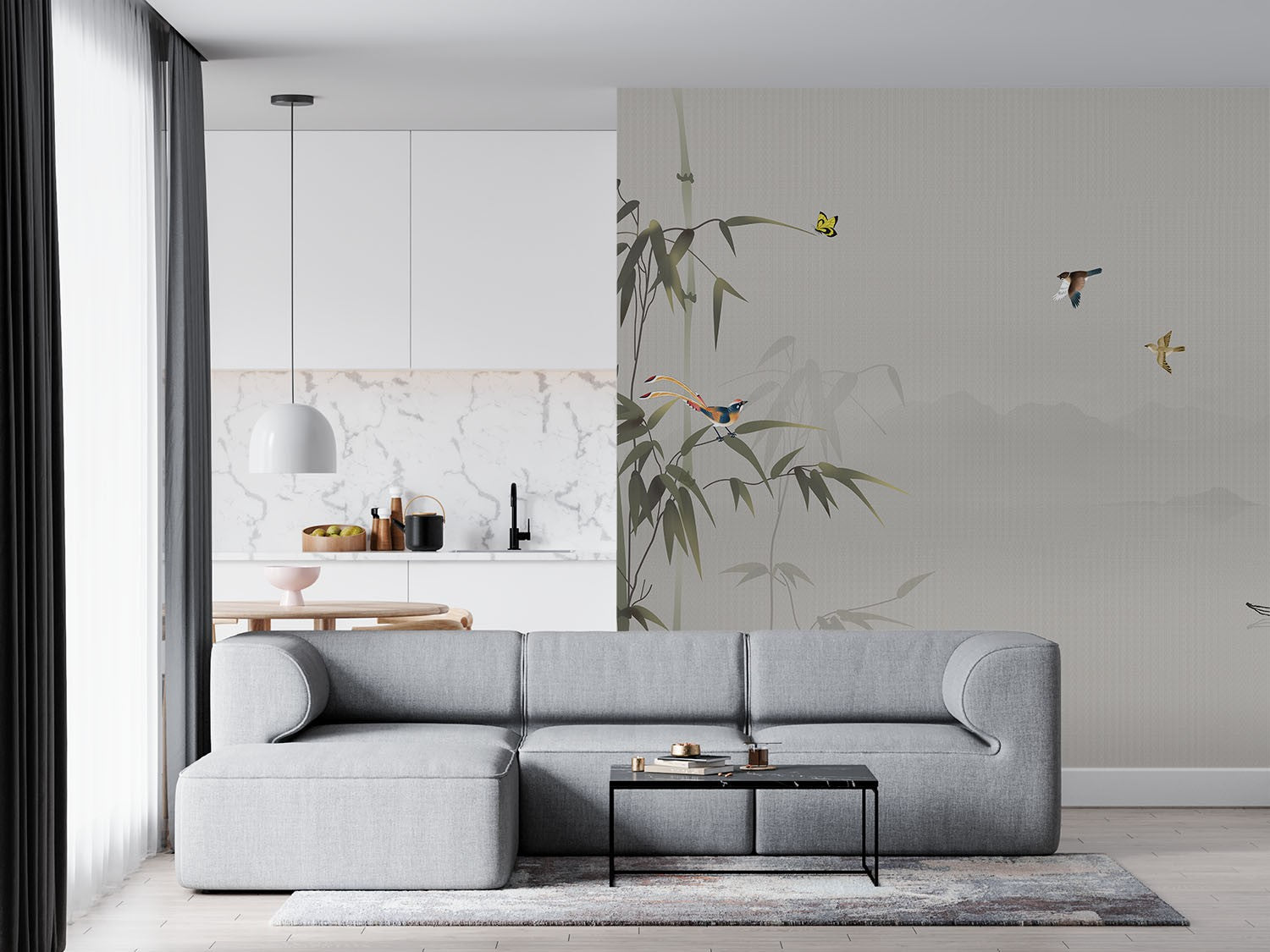 Misty Bamboo Art Chinoiserie Green Wallpaper Mural