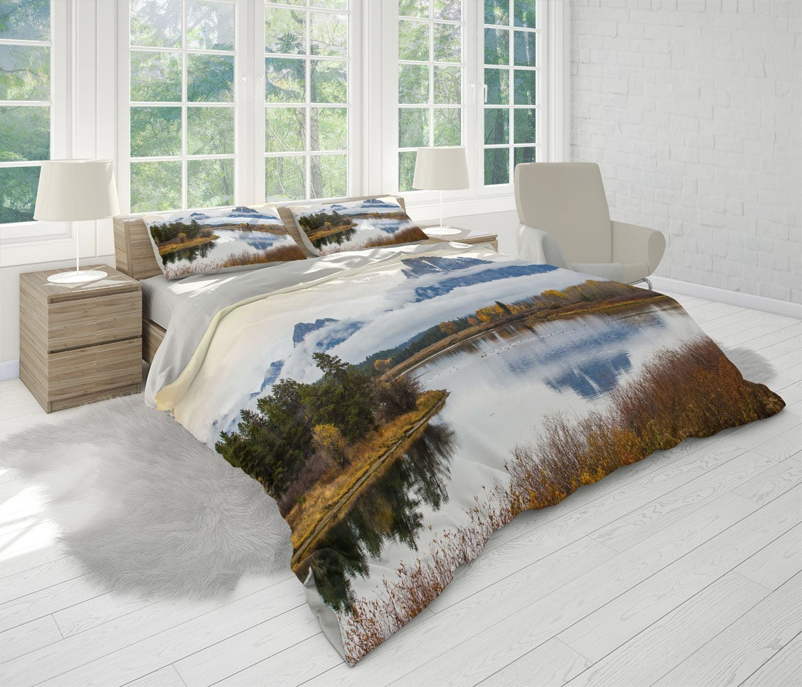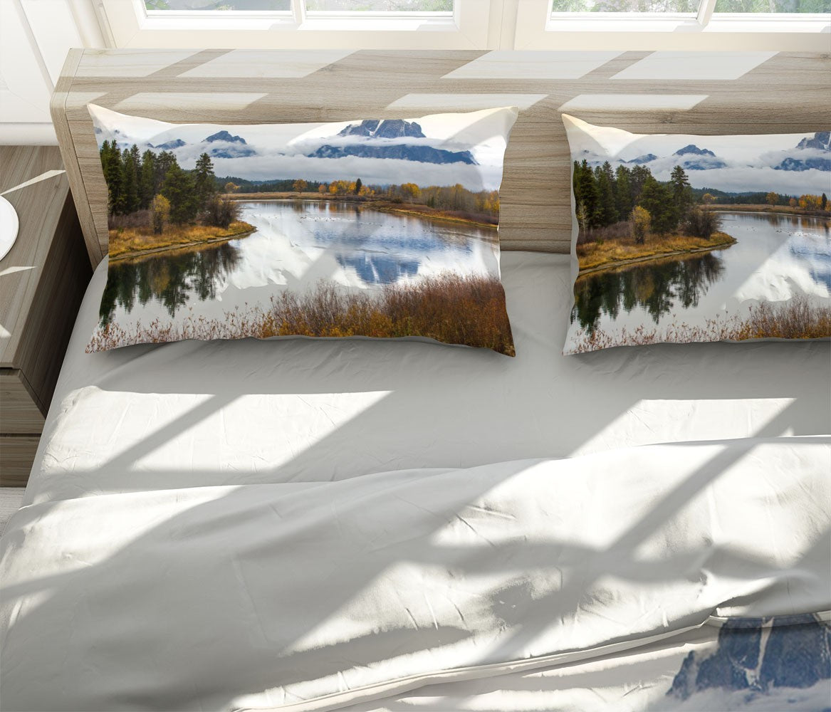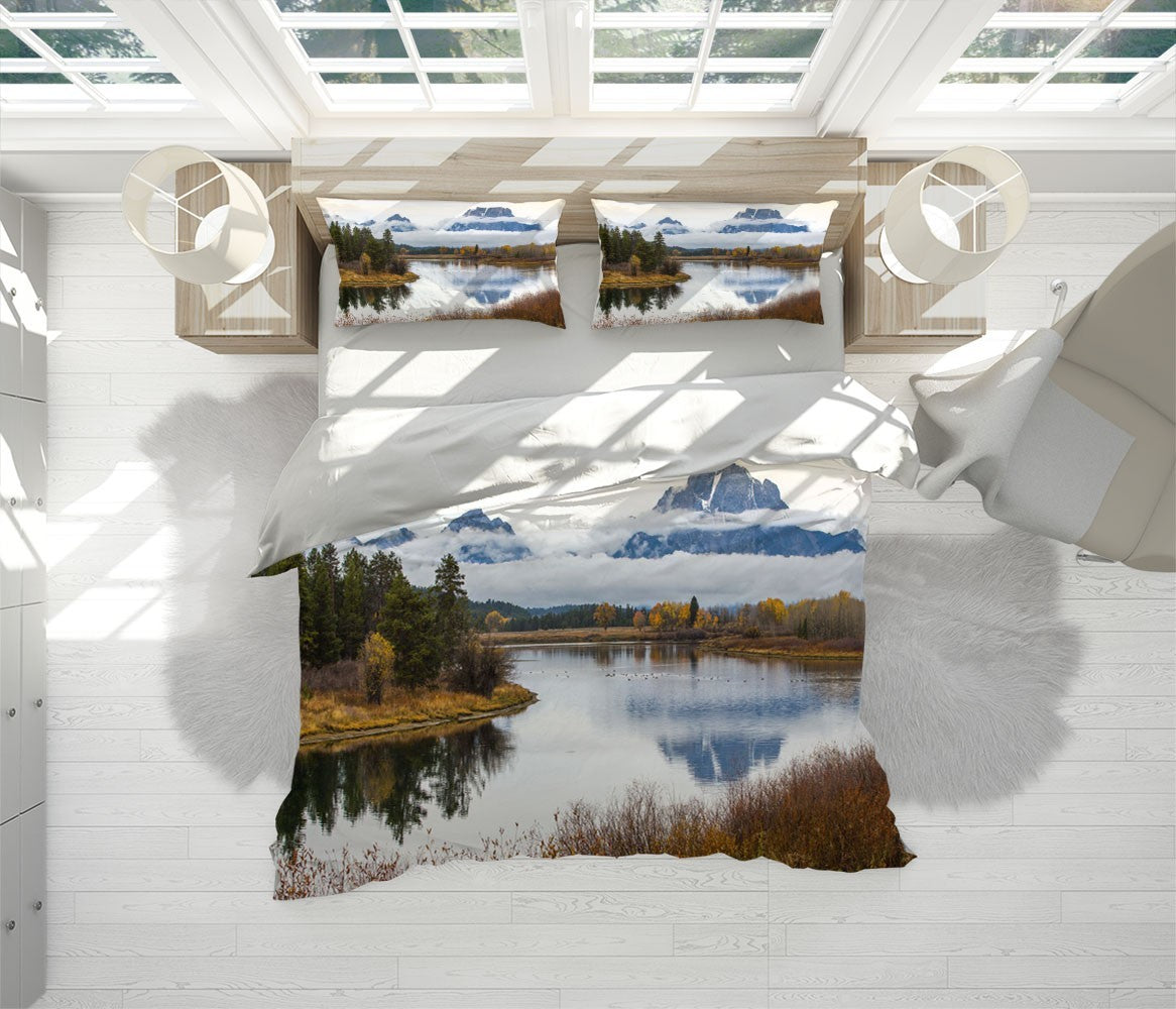 Misty Mountain Duvet Cover Set W Pillow Cover, Brown Nature Rivers & Lakes 3D Quilt Cover, Single Double Queen King Size Doona Cover