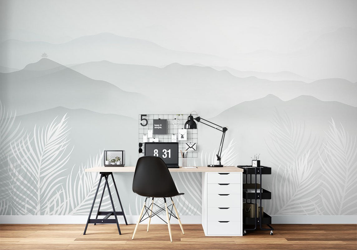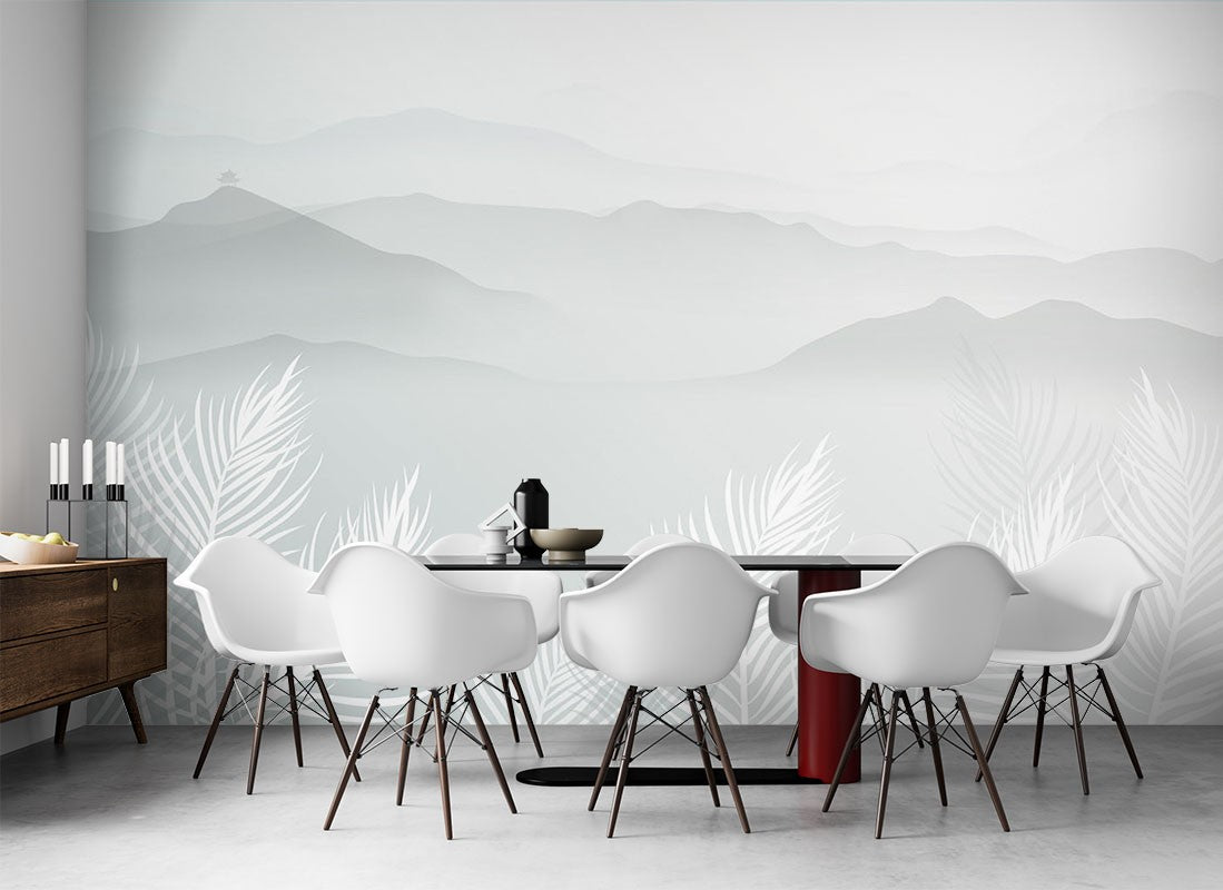 Misty Mountains Art Chinoiserie Gray Wallpaper Mural,Self-Adhesive Peel And Stick 3D Wall Decor,Australian Company Designer Wall Decor