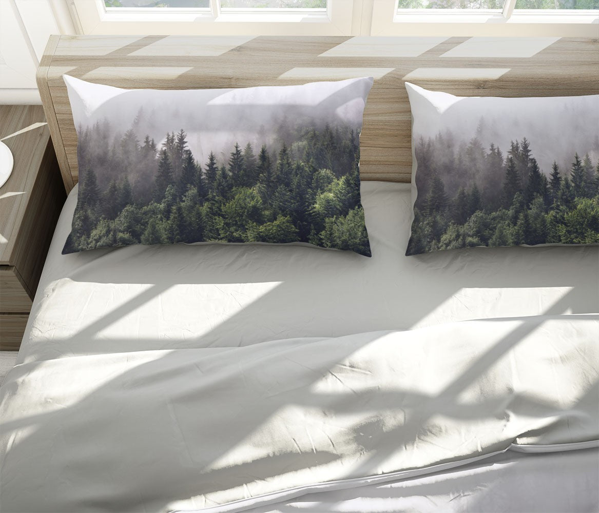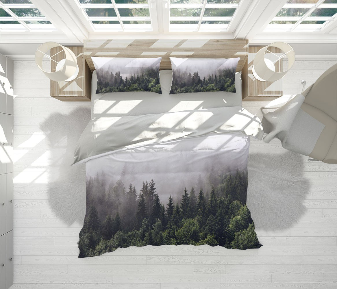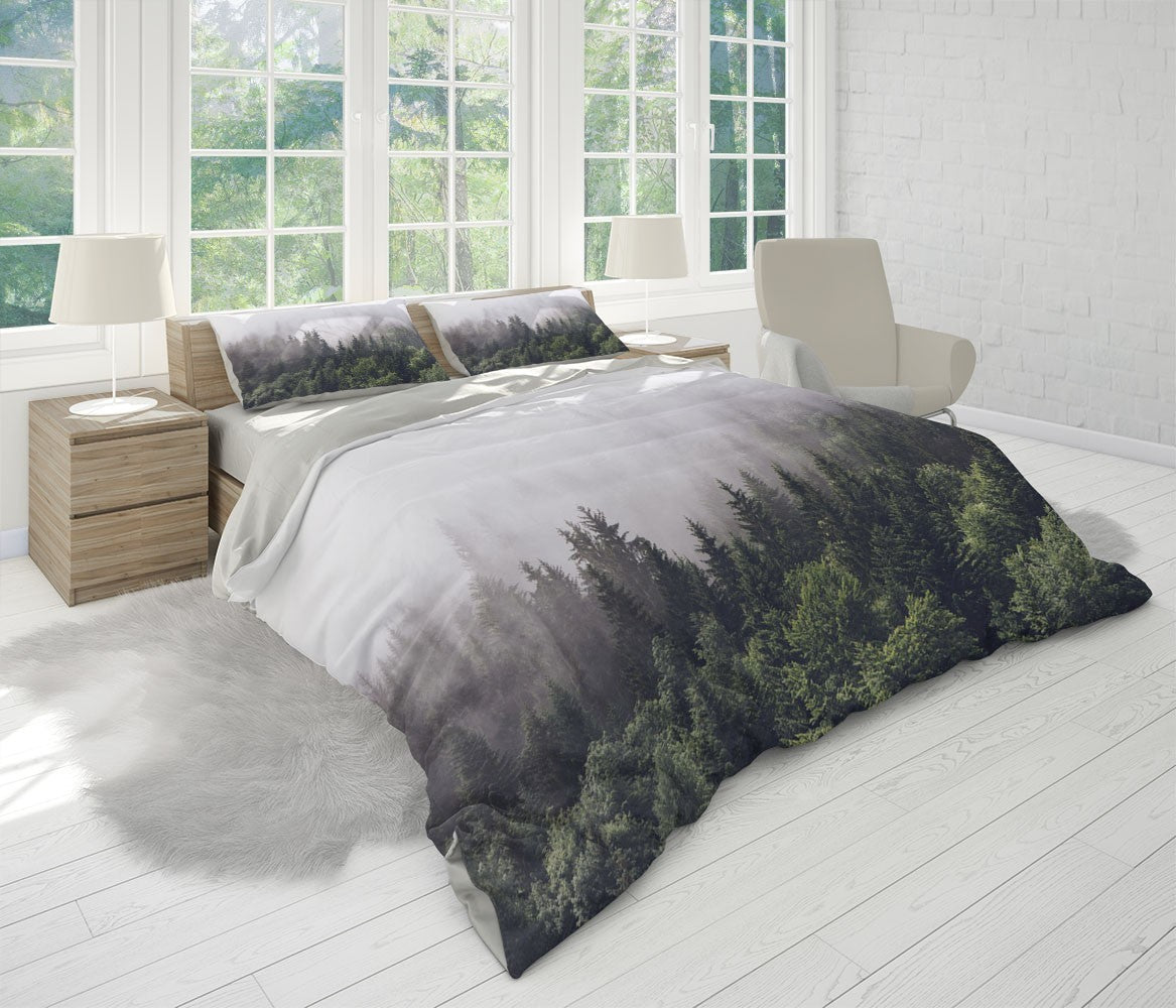 Misty Pines Duvet Cover Set W Pillow Cover, Green Forest Seasons 3D Quilt Cover, Single Double Queen King Size Doona Cover