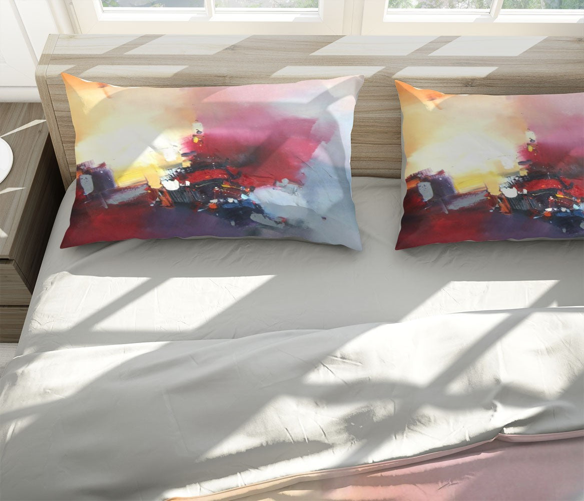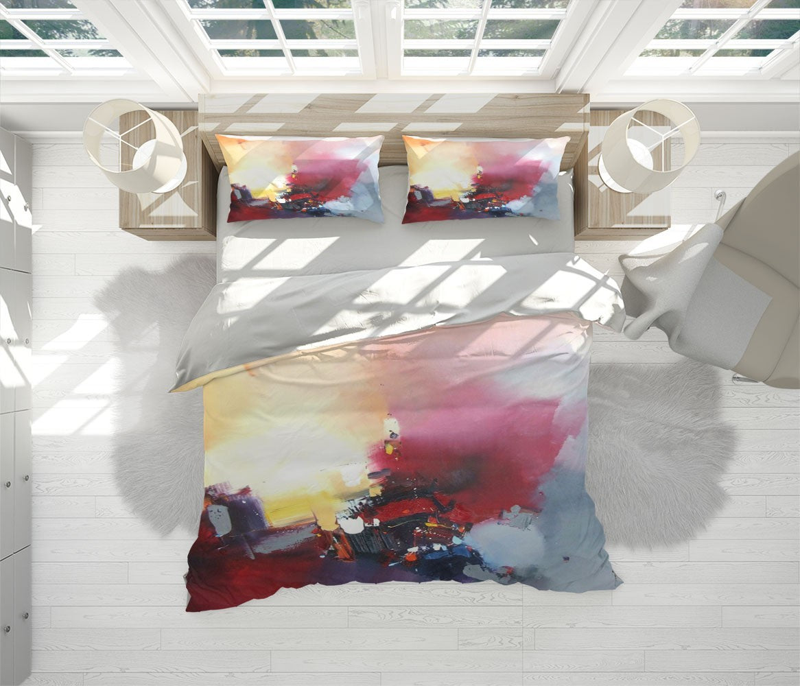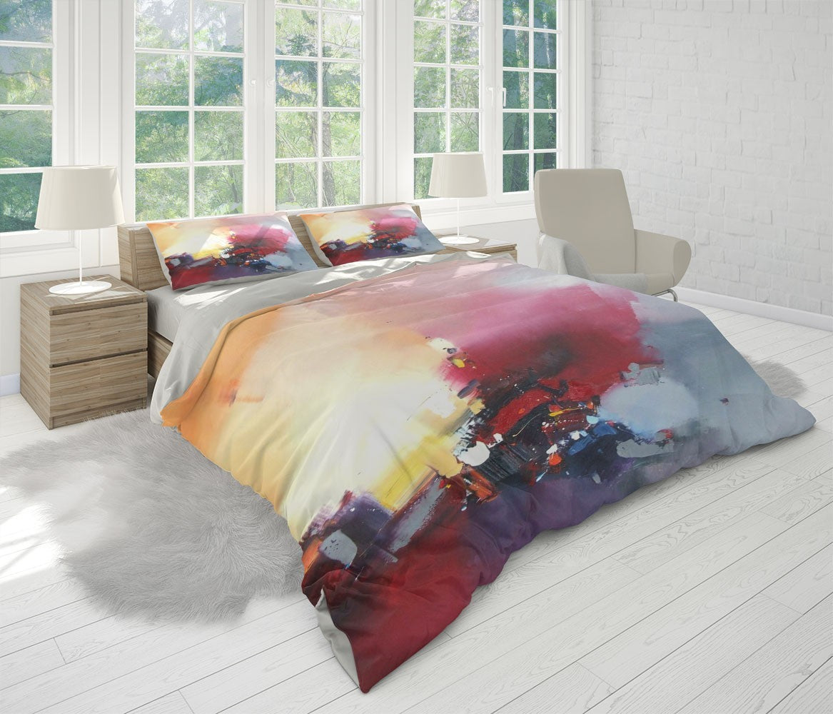 Modern Painting Duvet Cover Set W Pillow Cover, Red Art Abstract 3D Quilt Cover, Single Double Queen King Size Doona Cover