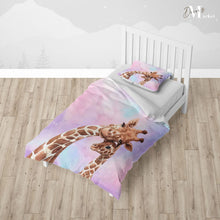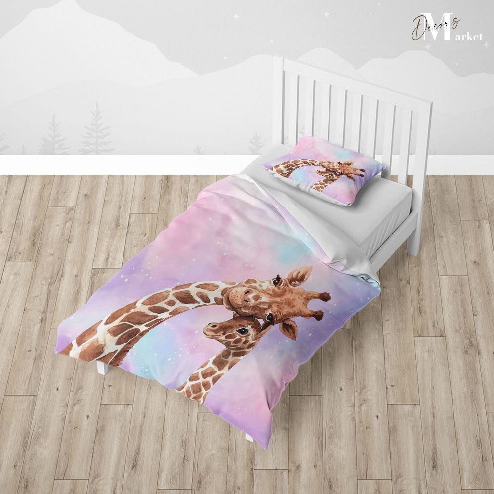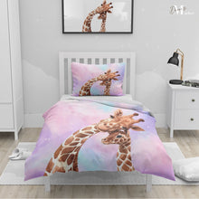 Mommy Baby Giraffe Duvet Cover Set w Pillow Cover, Brown Art Watercolor 3D Quilt Cover, Single Double Queen King Size Doona Cover