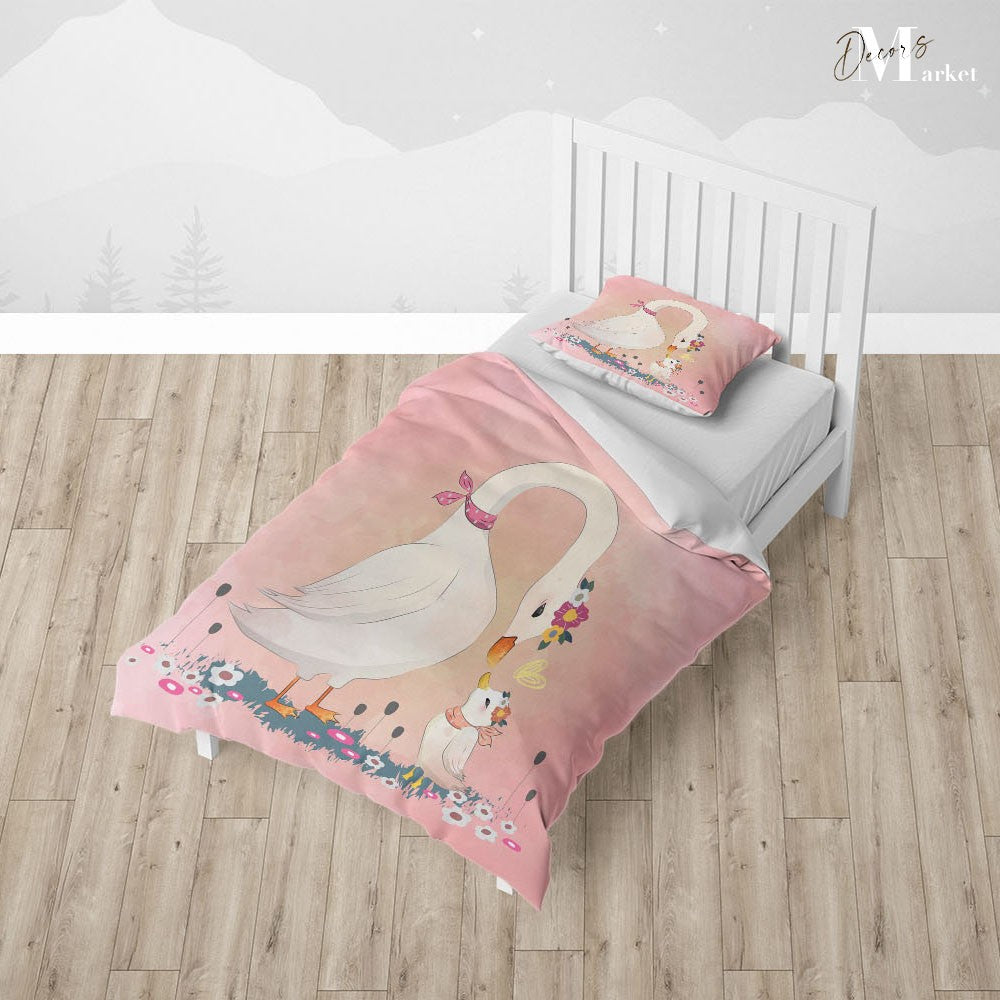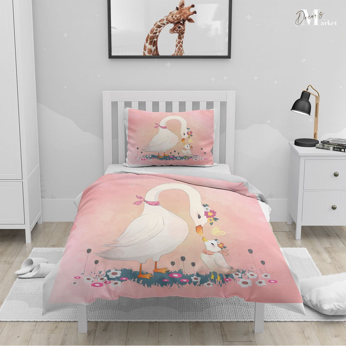Mommy Goose Baby Duvet Cover Set w Pillow Cover, Pink Kids Animal 3D Quilt Cover, Single Double Queen King Size Doona Cover