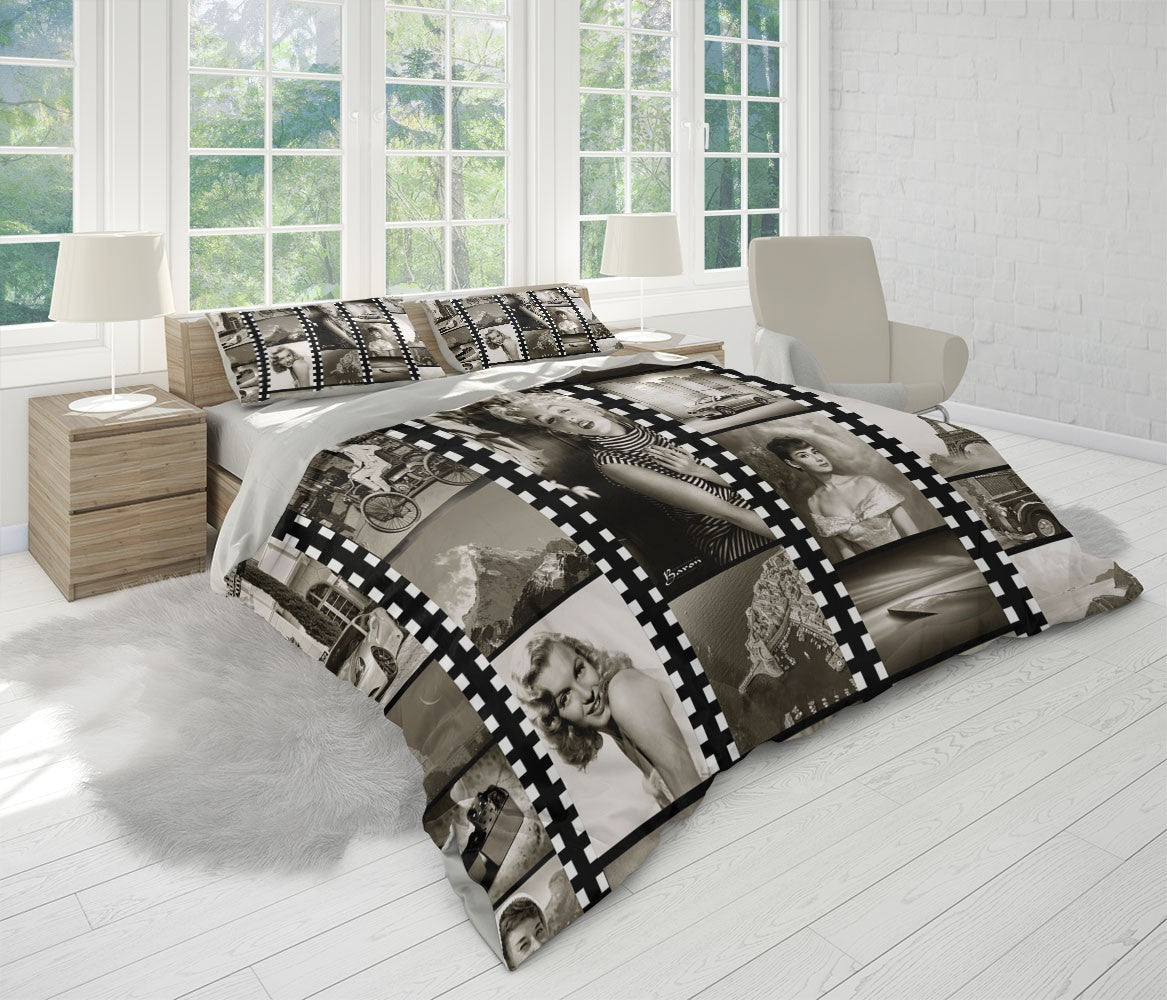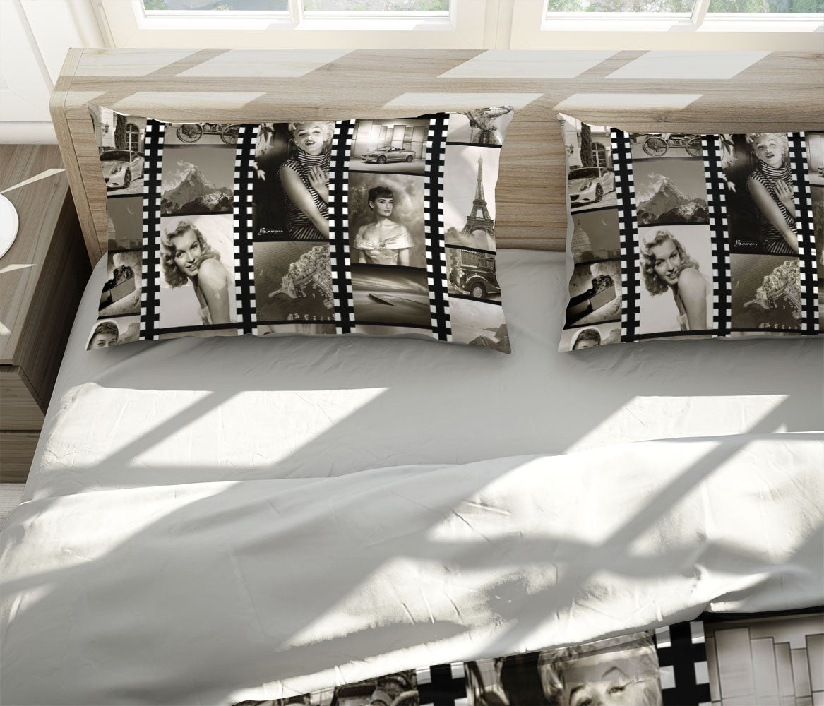 Monroe Collage Art Pop Art Black White 3D Duvet Cover Set W Pillow Cover, Single Double Queen King Size, Printed Cotton Quilt Doona Cover
