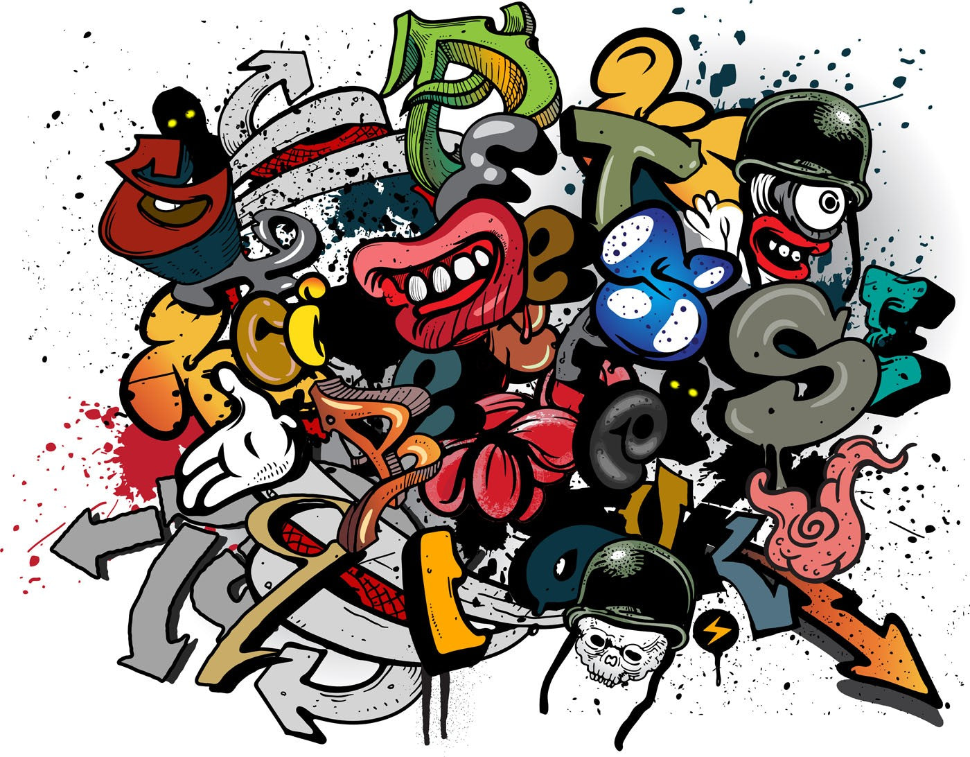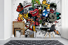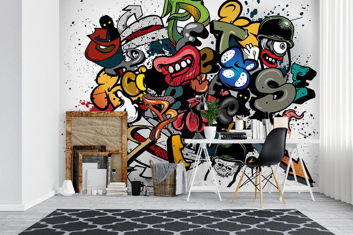Monster Graffiti Multicolour Wallpaper Mural,Self-Adhesive Peel And Stick 3D Wall Decal,Australian Company Designer Wall Decor
