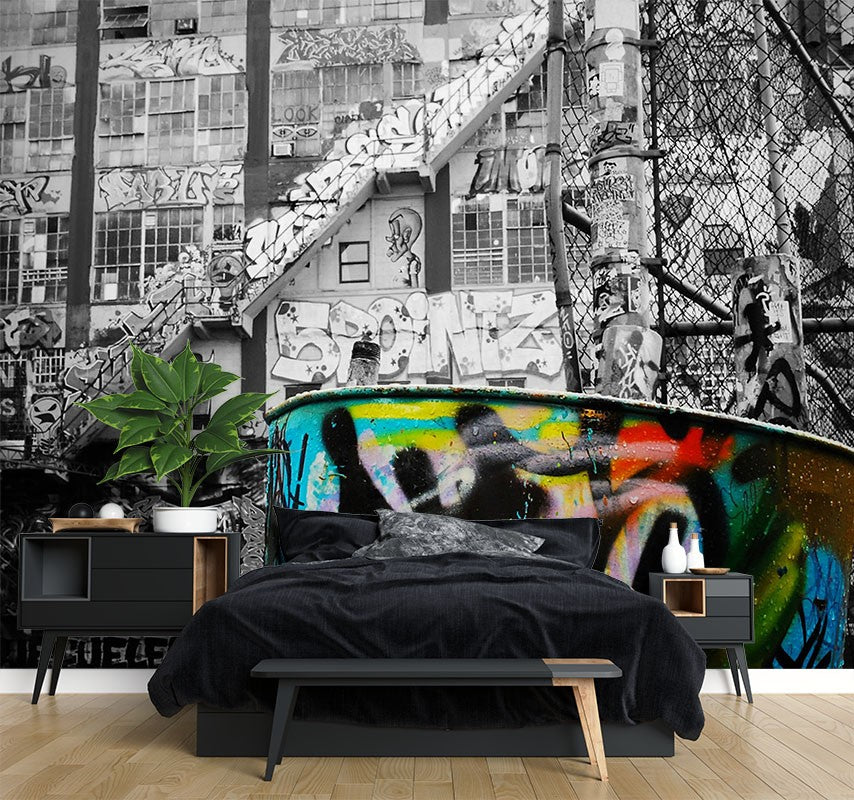 Monster Skull Graffiti Multicolour Wallpaper Mural,Self-Adhesive Peel And Stick 3D Wall Decor,Designer Removable Wall Decor