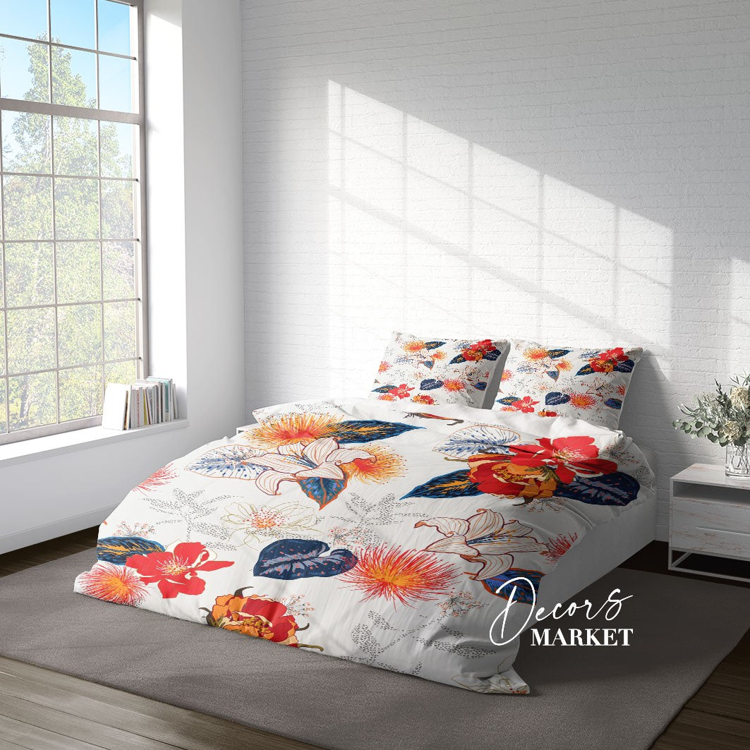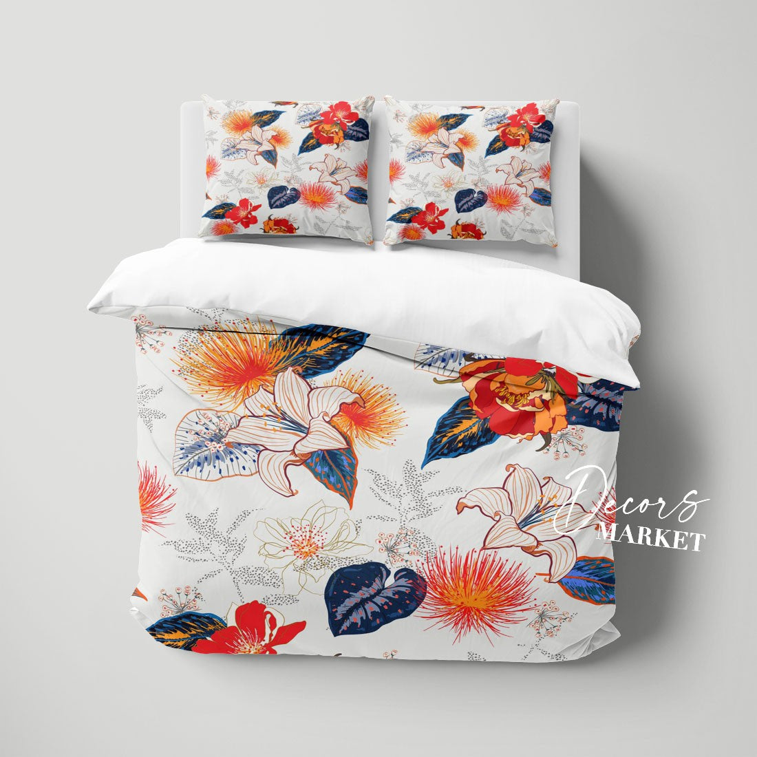 Monstera Tropical Flowers Duvet Cover Set w Pillowcases, Red Floral Leaves 3D Quilt Cover, 3pc Single Double Queen King Size Doona Cover
