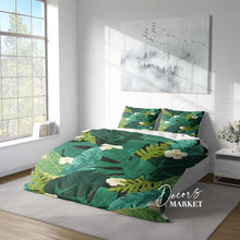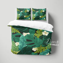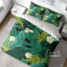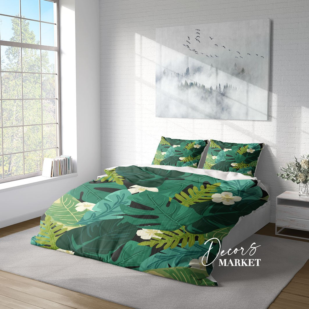 Monstera Leaf Fabric Duvet Cover Set w Pillowcases, Green Floral Patterns 3D Quilt Cover, 3pc Single Double Queen King Size Doona Cover