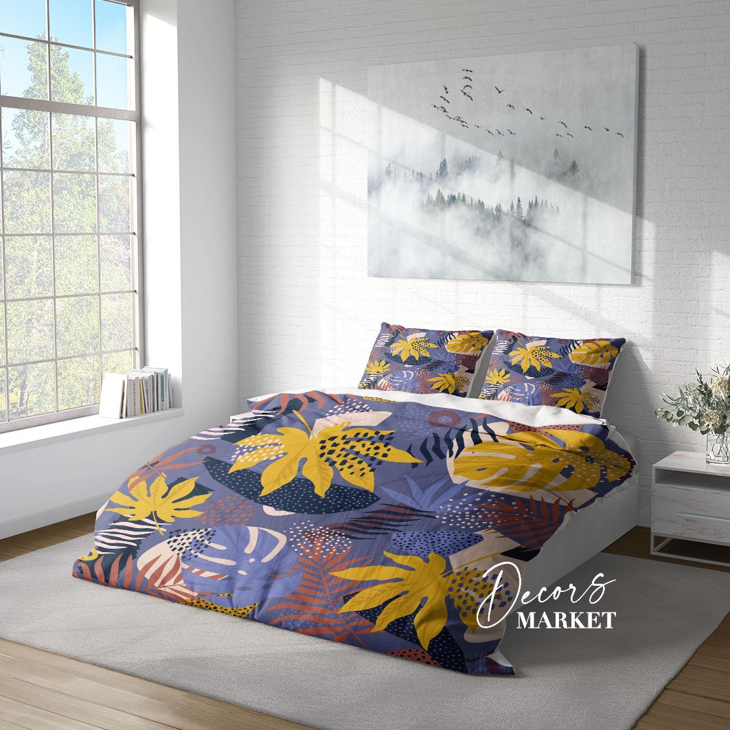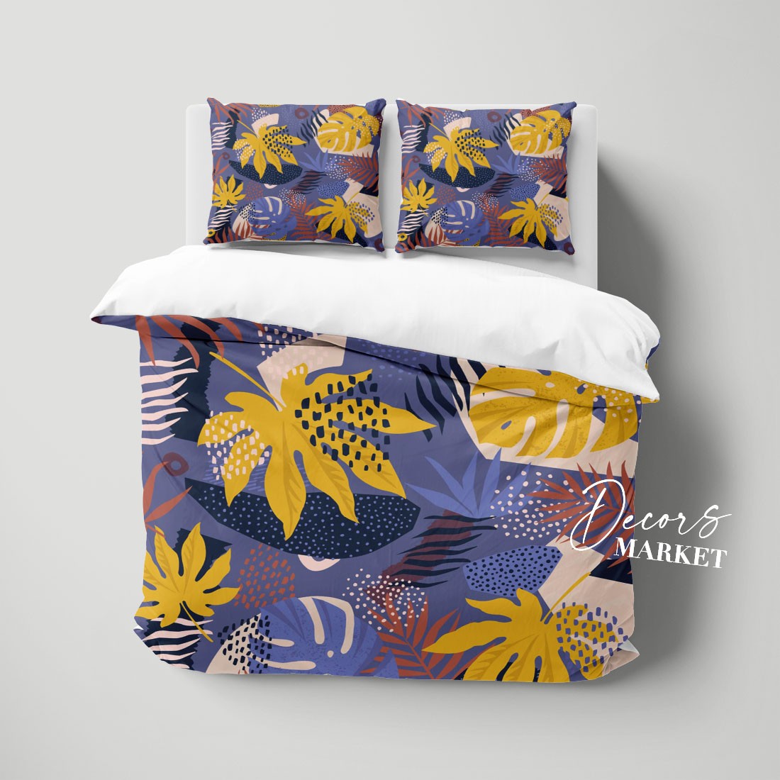 Monstera Leaves Duvet Cover Set w Pillowcases, Purple Floral Leaves 3D Quilt Cover, 3pc Single Double Queen King Size Doona Cover