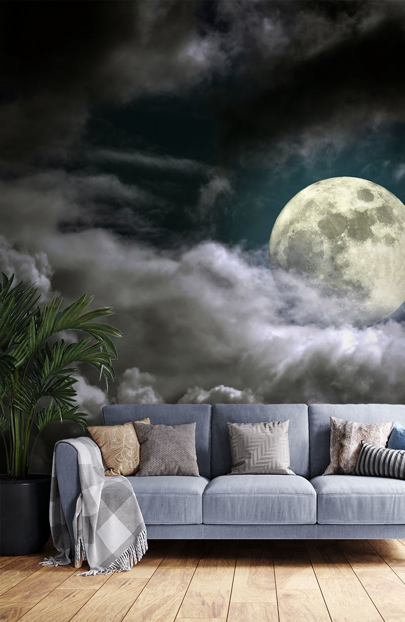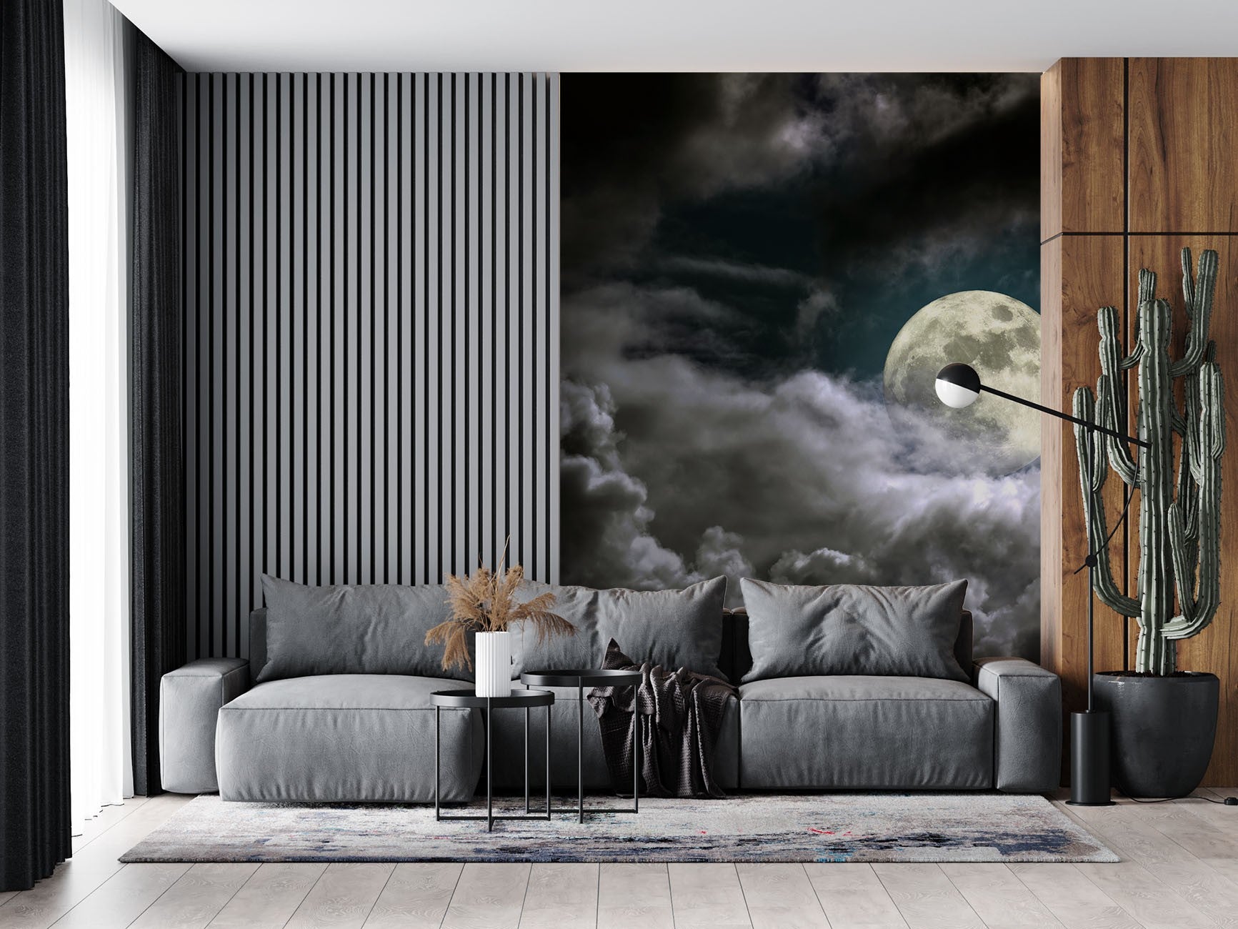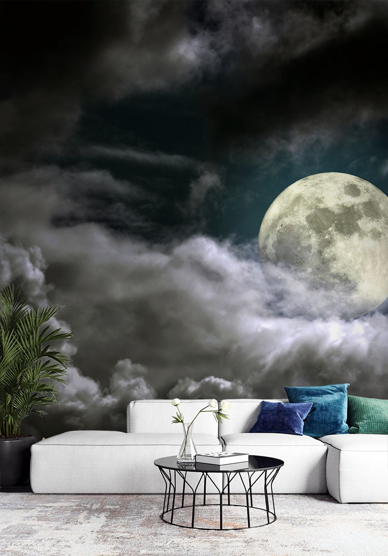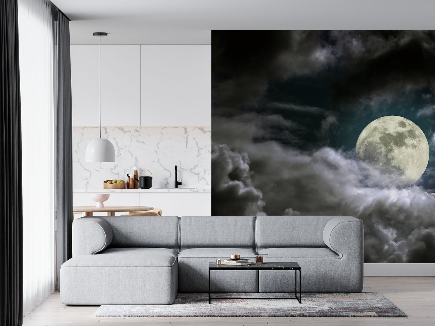 Moon Clouds Nature Sky Dark Wallpaper Mural