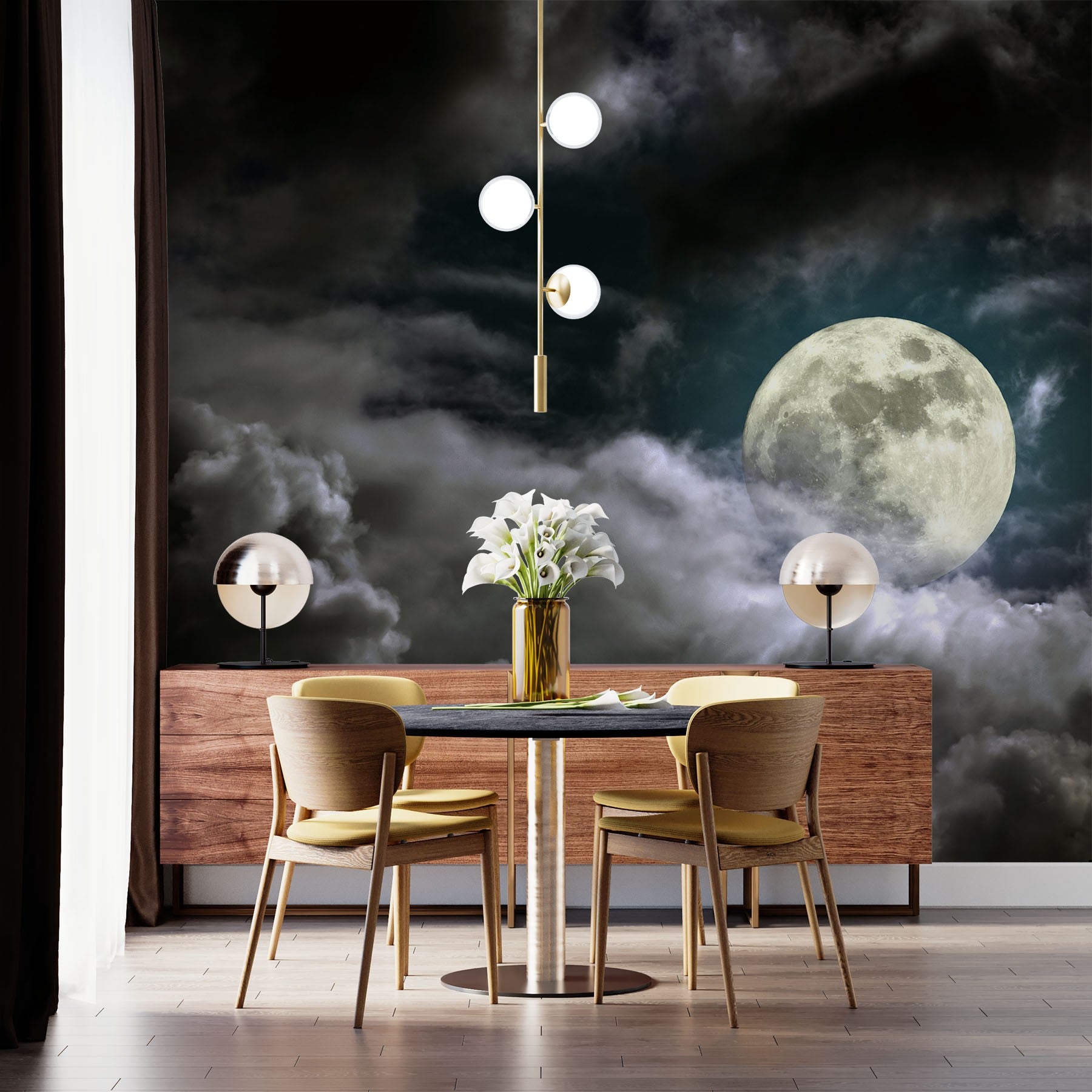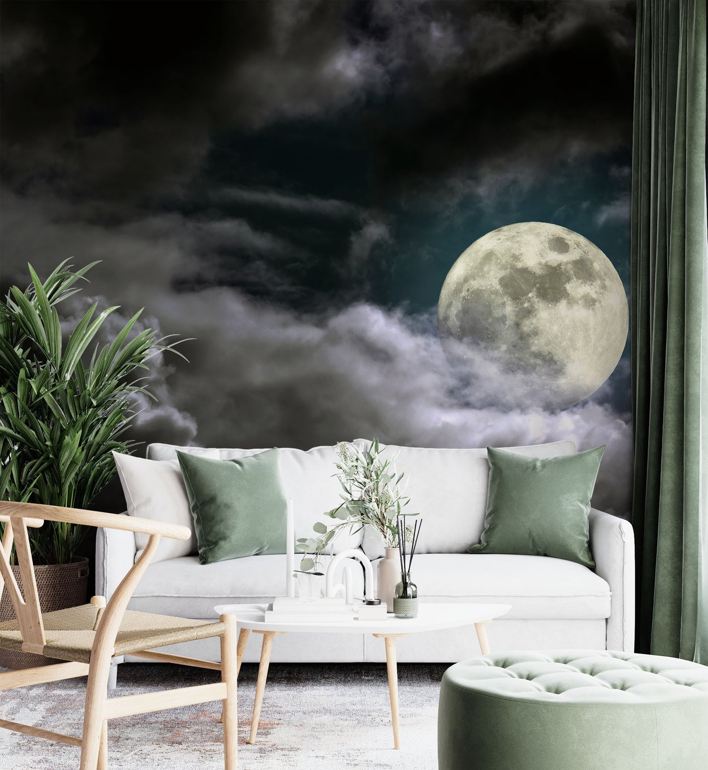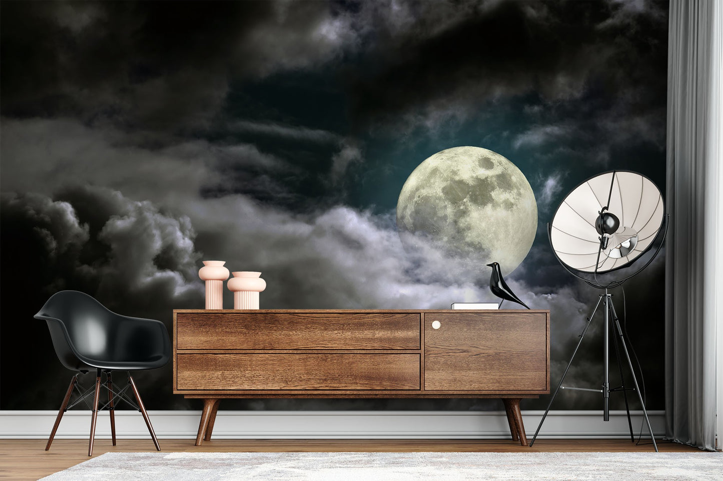 Moon Clouds Nature Sky Dark Wallpaper Mural