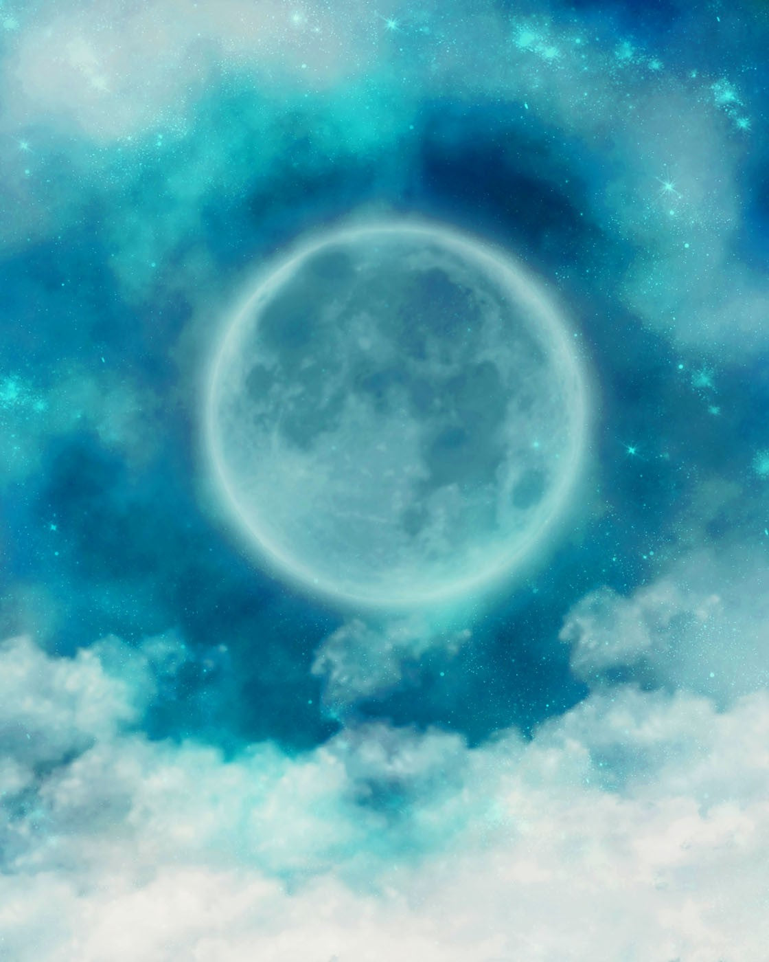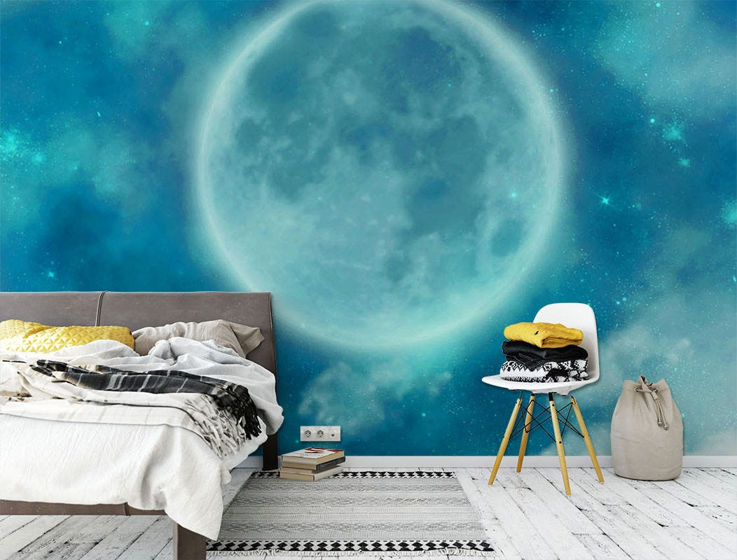 Moon Starry Art Fantasy Blue Wallpaper Mural,Self-Adhesive Peel And Stick 3D Wall Decor,Designer Removable Wall Decor