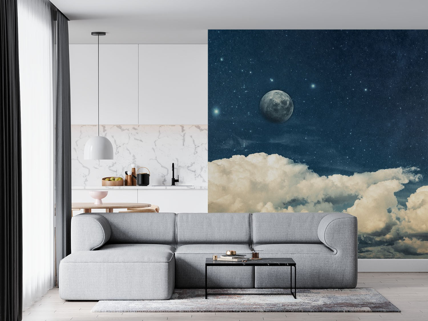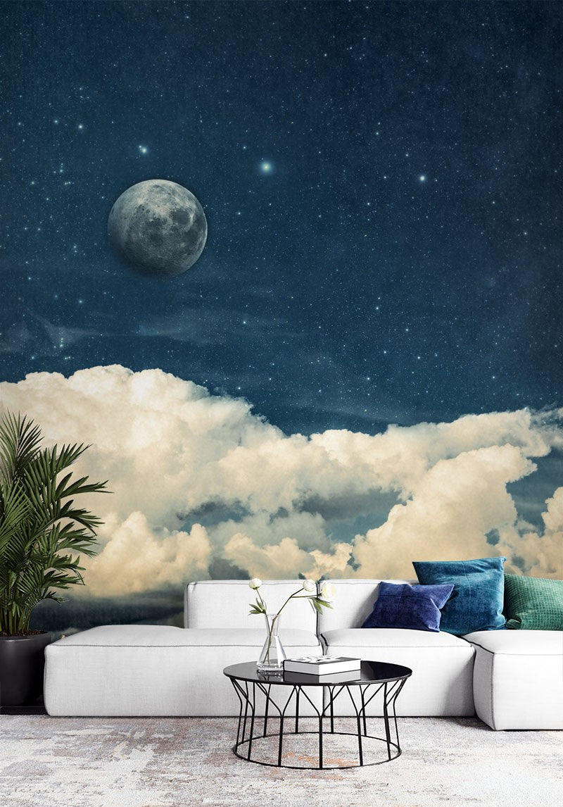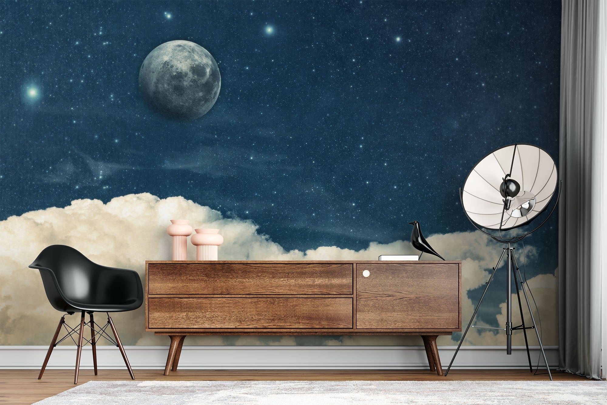 Moon Universe Nature Sky Blue Wallpaper Mural