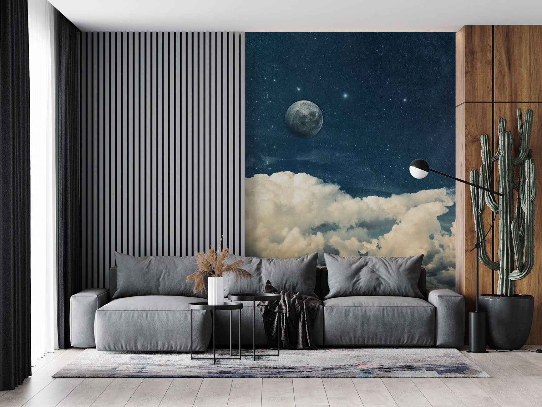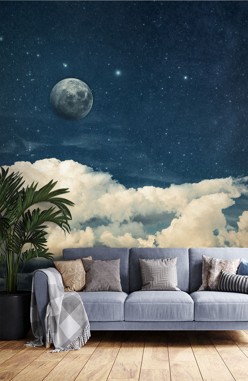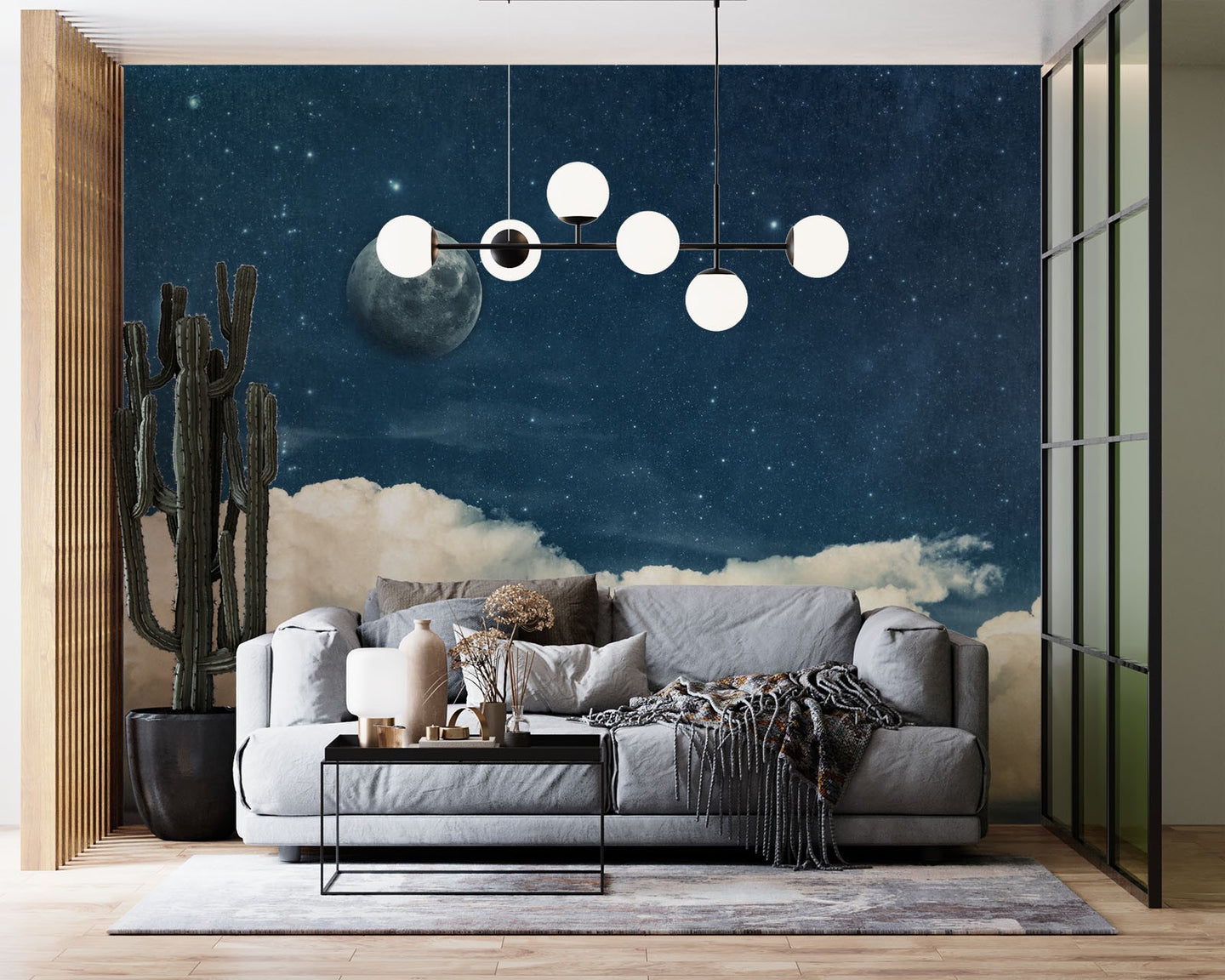 Moon Universe Nature Sky Blue Wallpaper Mural