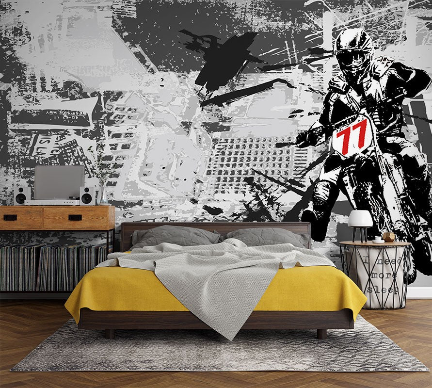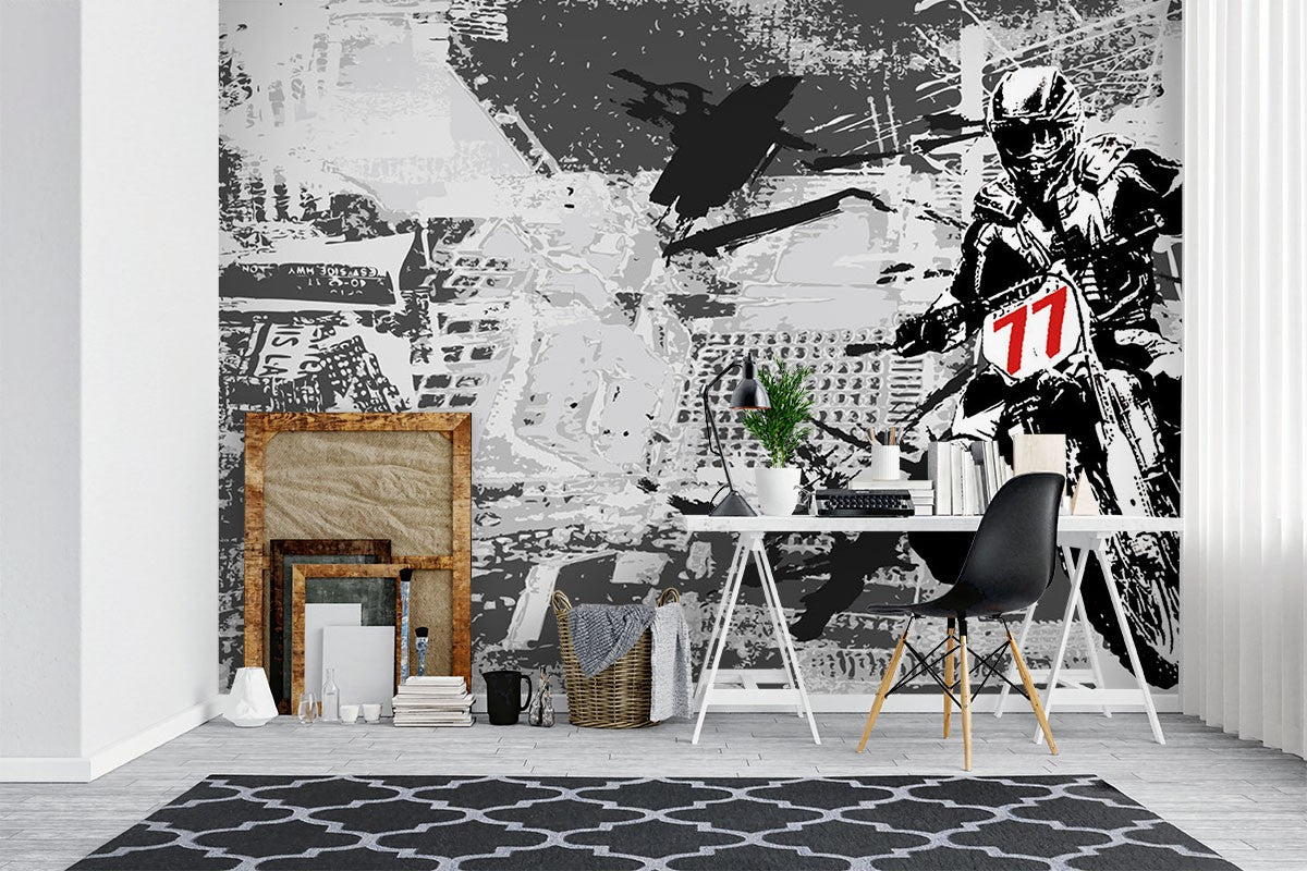 Moto Collage Art Pop Art Black Wallpaper Mural,Self-Adhesive Peel And Stick 3D Wall Decor,Bedroom Australian Company Wall Decor