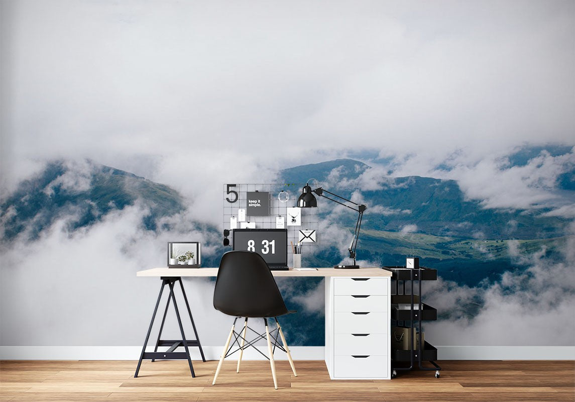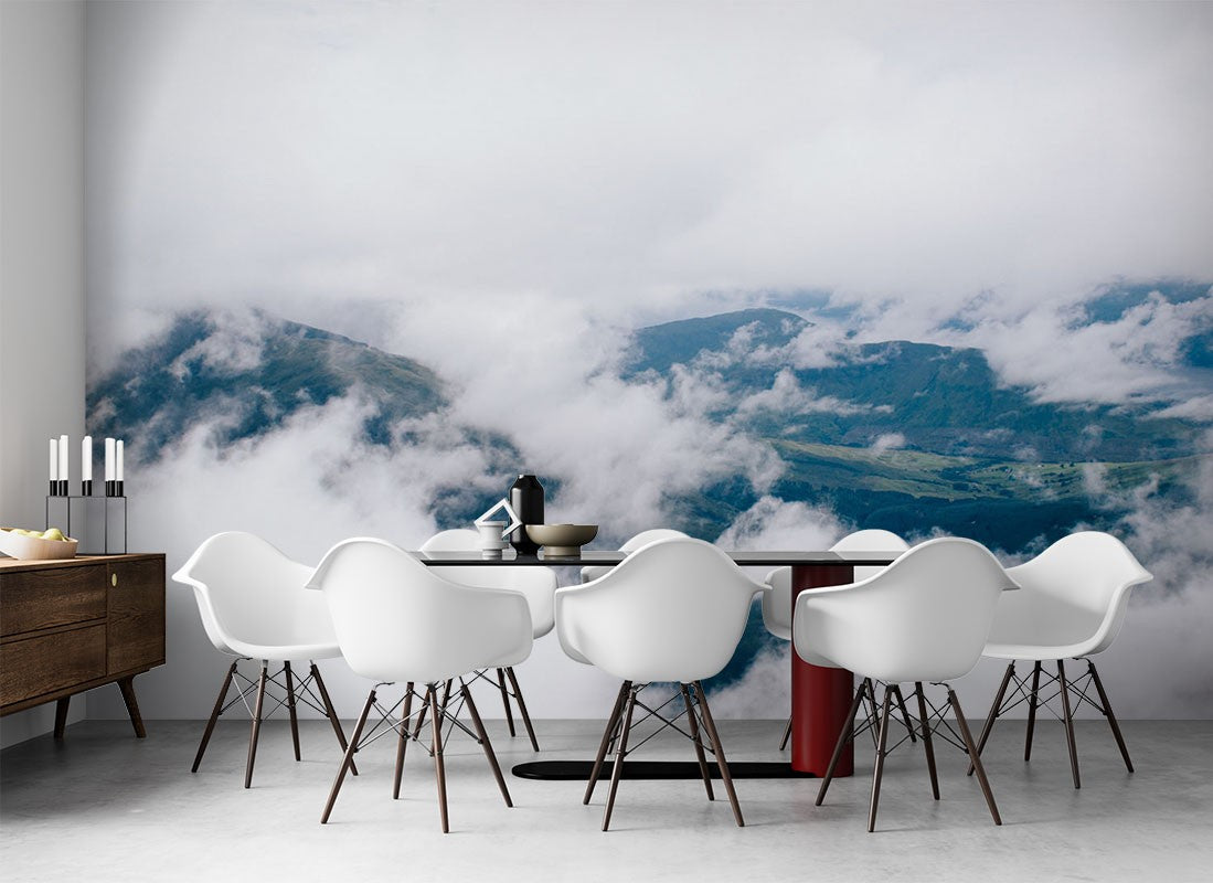 Mountain Fog Nature White Wallpaper Mural,Self-Adhesive Peel And Stick 3D Wall Decal,Removable Australian Company Wall Decor