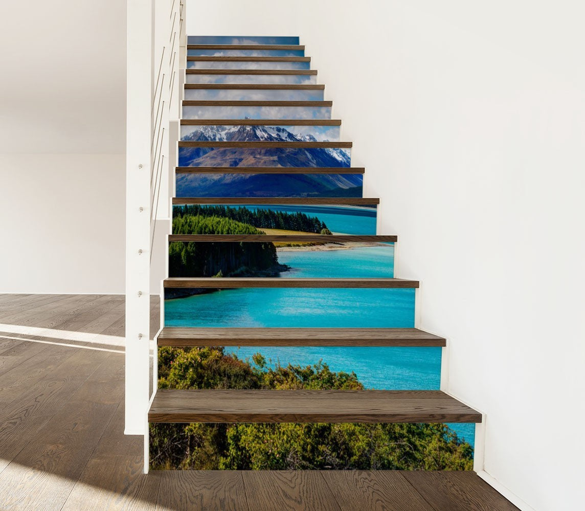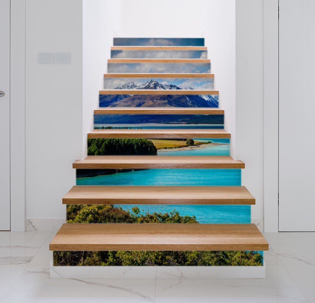 Mountain Lake Nature Rivers Blue Stair Riser Decals, Waterproof Removable Staircase Decals, Vinyl Peel And Stick Stairs Decal Stickers