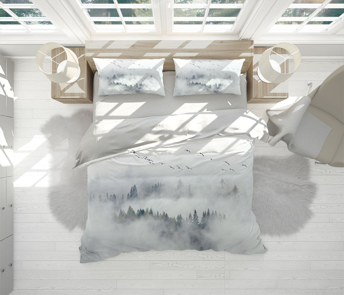 Mountain Misty Duvet Cover Set W Pillow Cover, Gray Nature Landscape 3D Quilt Cover, Single Double Queen King Size Doona Cover