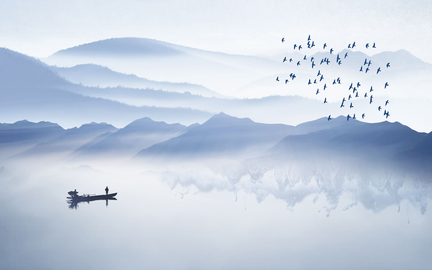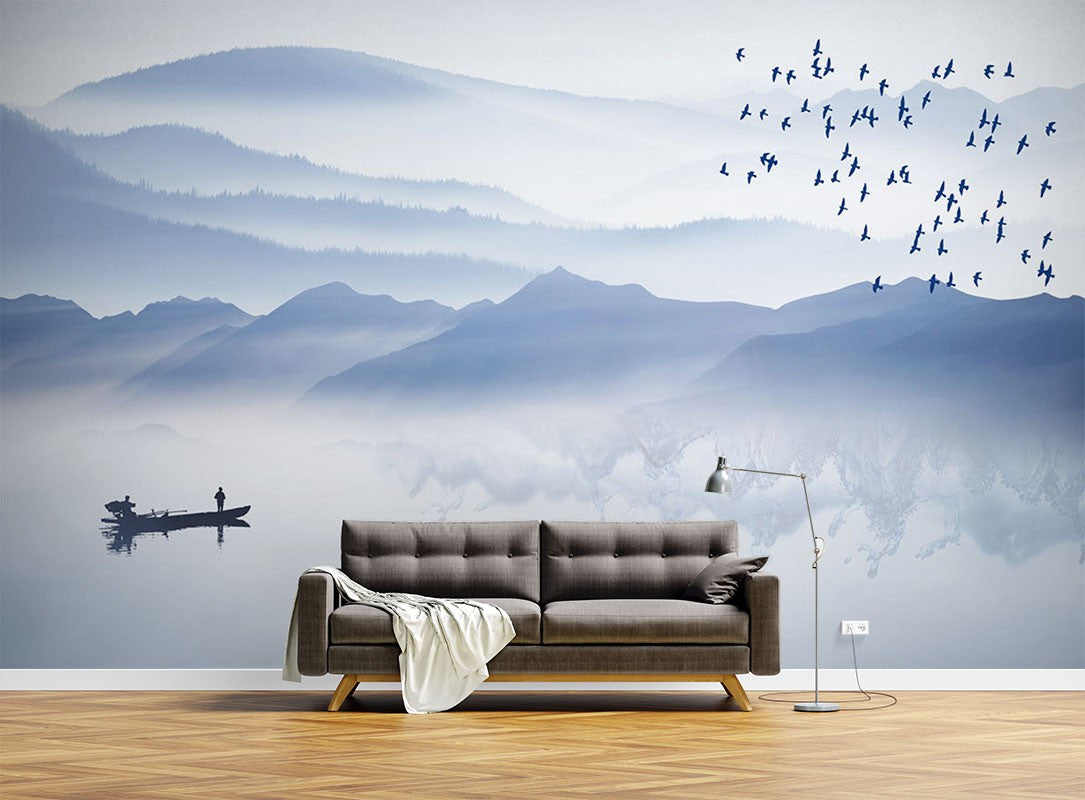 Mountain Water Nature Lakes Gray Wallpaper Mural,Self-Adhesive Peel And Stick 3D Wall Art,Bedroom Australian Company Wall Decor
