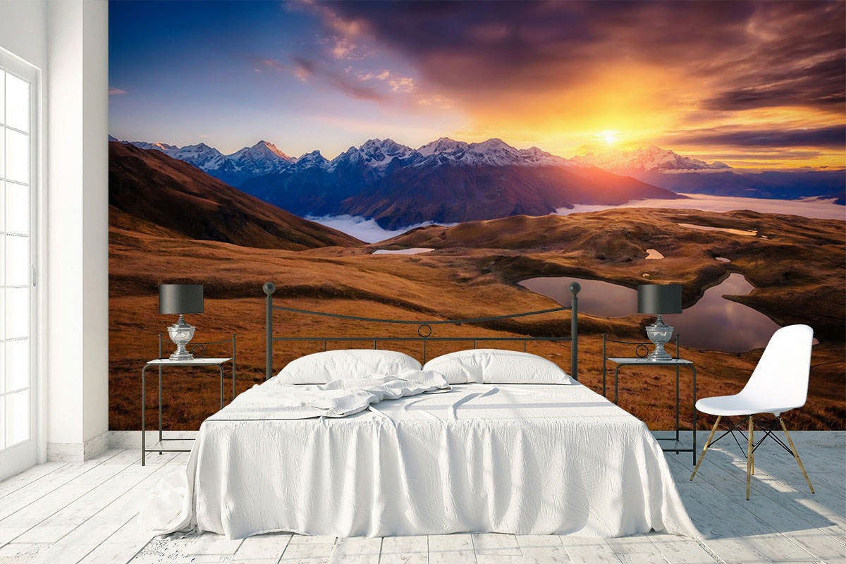 Mountains Pool Nature Mountain Brown Wallpaper Mural,Self-Adhesive Peel And Stick 3D Wall Decal,Bedroom Removable Wall Decor