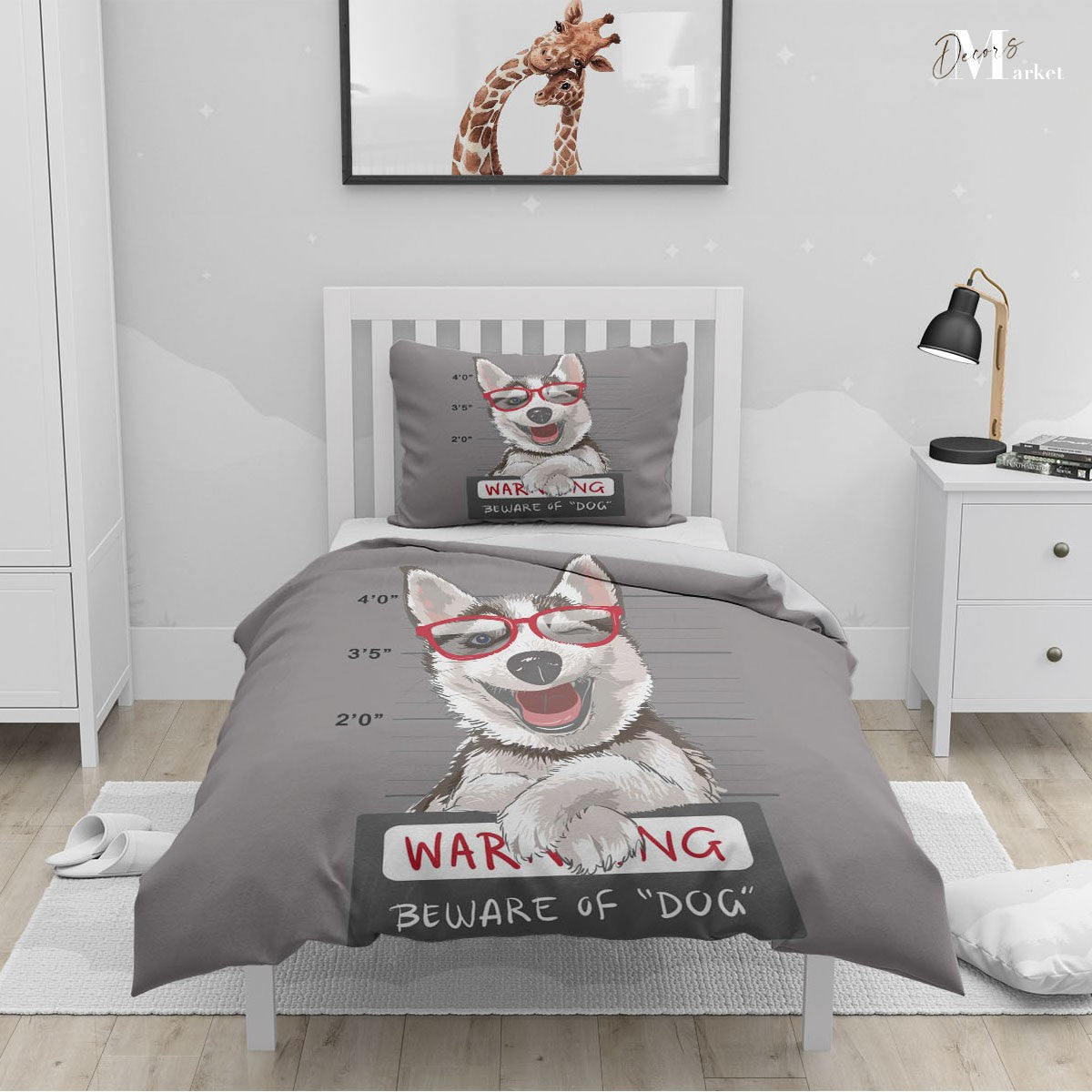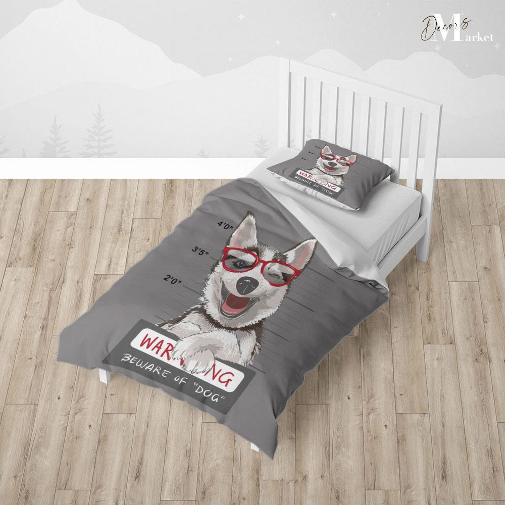 Mugshot Dog Duvet Cover Set w Pillow Cover, Gray Art Pop Art 3D Quilt Cover, Single Double Queen King Size Doona Cover
