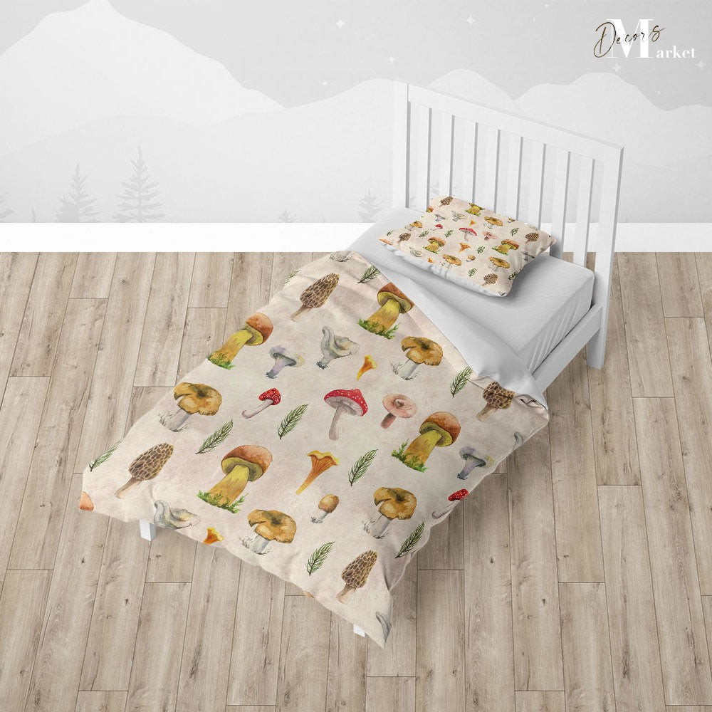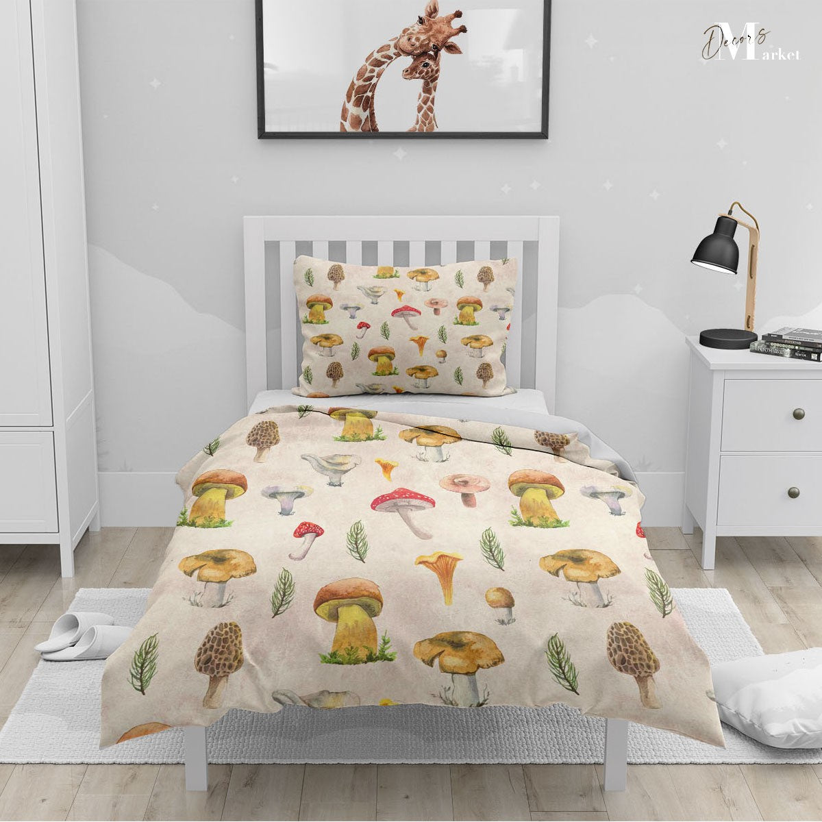 Mushrooms Botanical Duvet Cover Set w Pillow Cover, Multicolour Forest Plant 3D Quilt Cover, Single Double Queen King Size Doona Cover