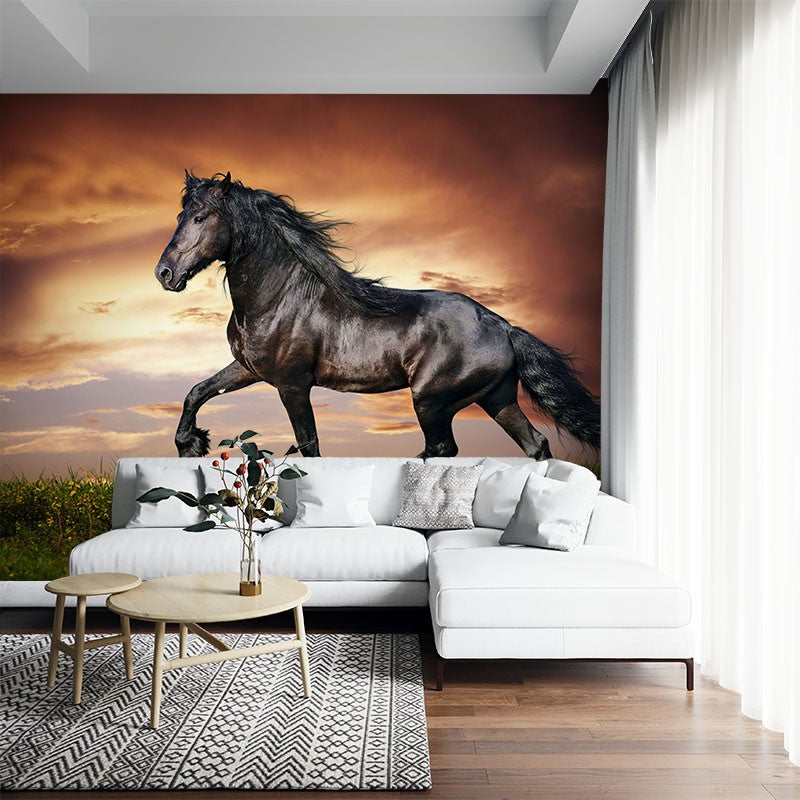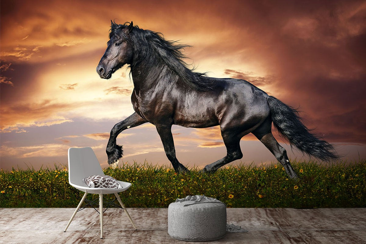 Mustang Animals Horses Black Wallpaper Mural,Self-Adhesive Peel And Stick 3D Wall Decal,Bedroom Designer Wall Decor