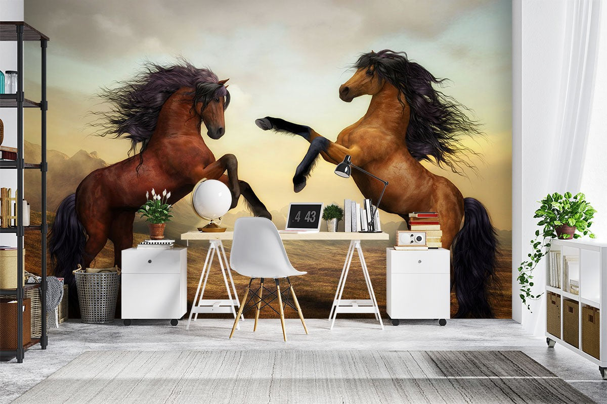 Mustang Animals Horses Brown Wallpaper Mural,Self-Adhesive Peel And Stick 3D Wall Decor,Australian Company Bedroom Wall Decor