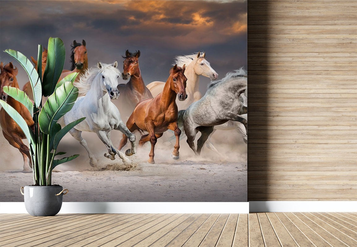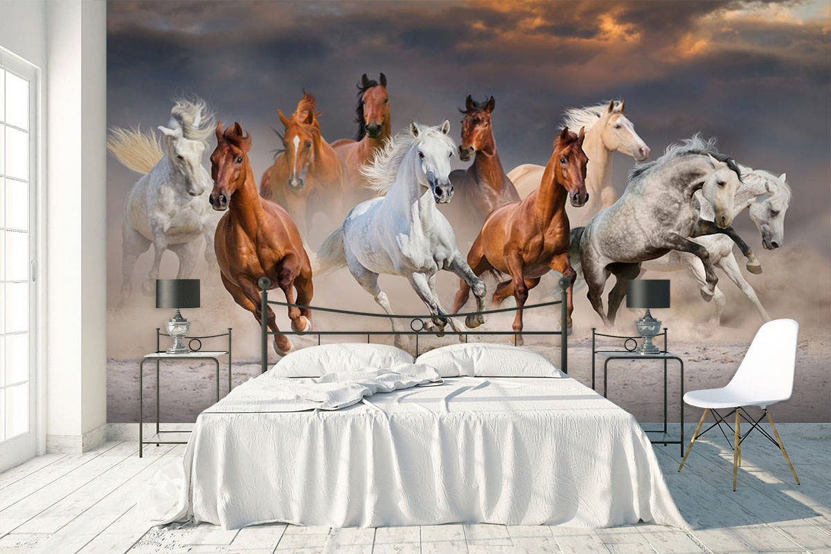 Mustang Running Animals Horses White Wallpaper Mural,Self-Adhesive Peel And Stick 3D Wall Paper,Bedroom Australian Company Wall Decor