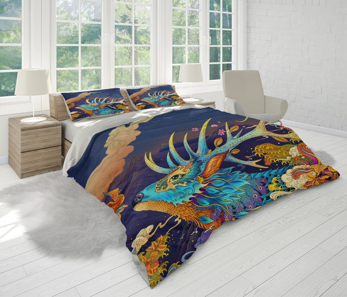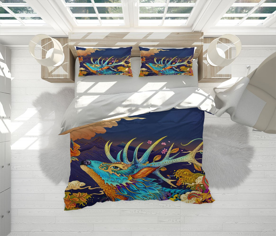 Elk Mystery Art Fantasy Blue 3D Duvet Cover Set W Pillow Cover, Single Double Queen King Size, Printed Cotton Quilt Doona Cover 3 Pcs