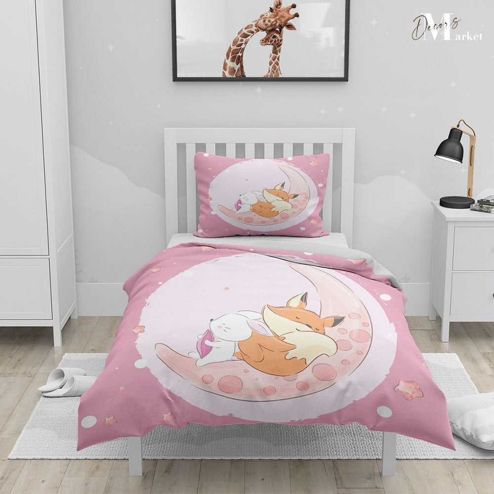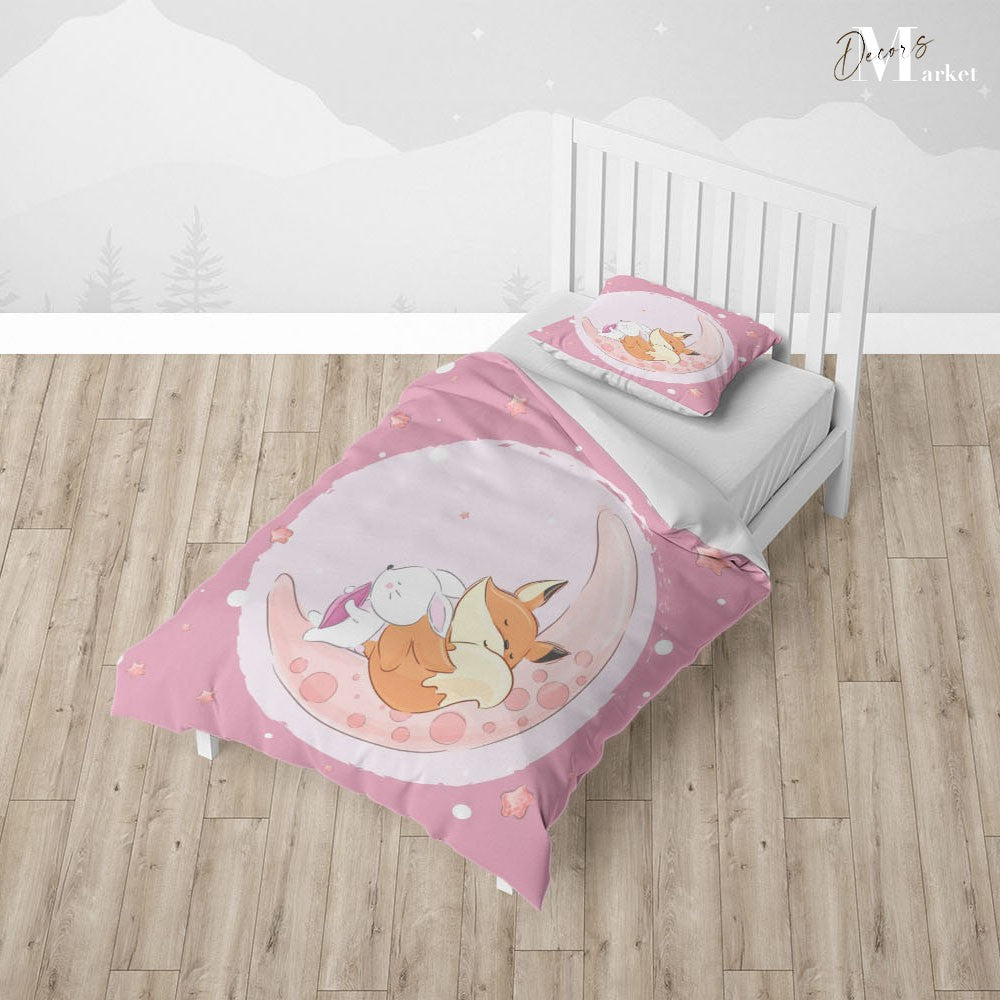 Napping Baby Fox Duvet Cover Set w Pillow Cover, Pink Art Watercolor 3D Quilt Cover, Single Double Queen King Size Doona Cover