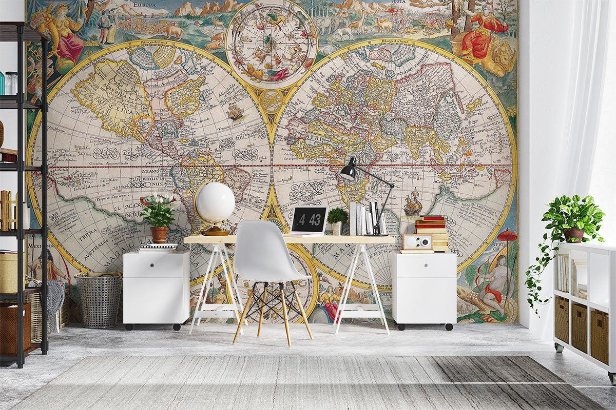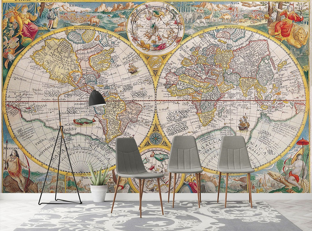 Nautical Era Maps Vintage Map Brown Wallpaper Mural,Self-Adhesive Peel And Stick 3D Wall Decal,Australian Company Designer Wall Decor