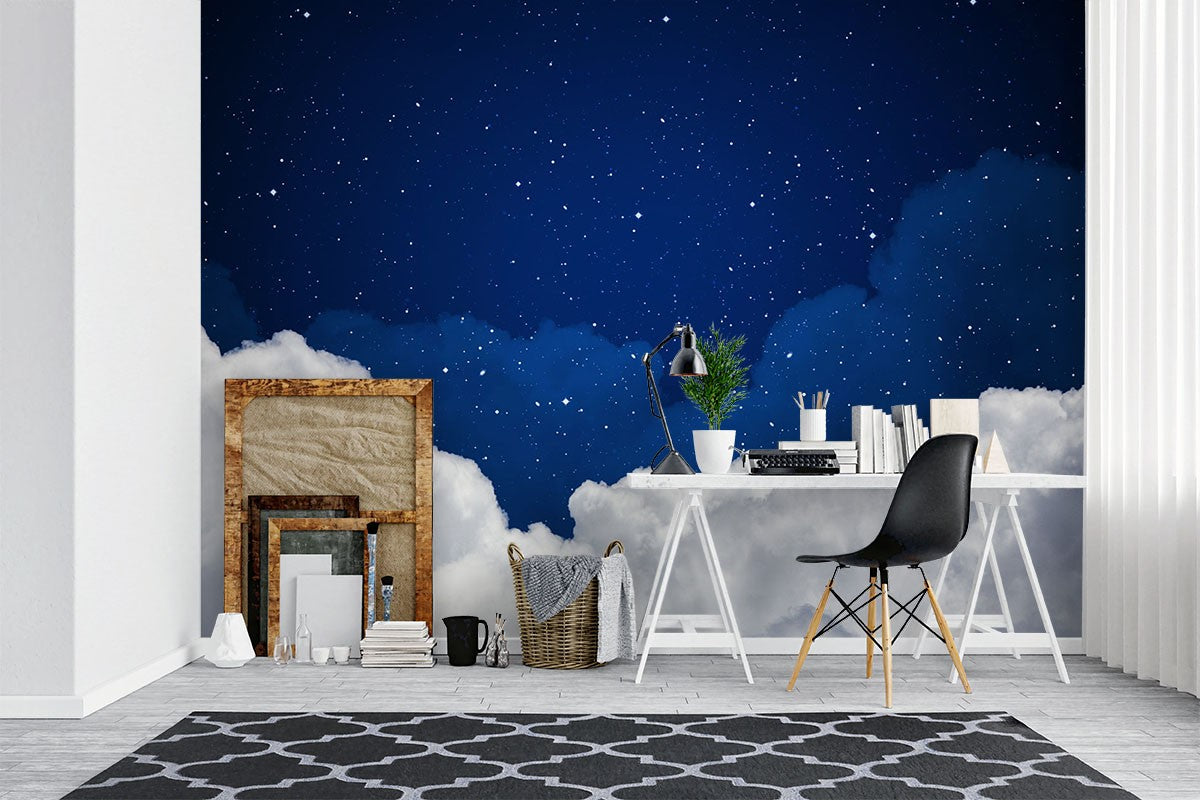 Night Sky Nature Blue Wallpaper Mural,Self-Adhesive Peel And Stick 3D Wall Paper,Australian Company Bedroom Wall Decor