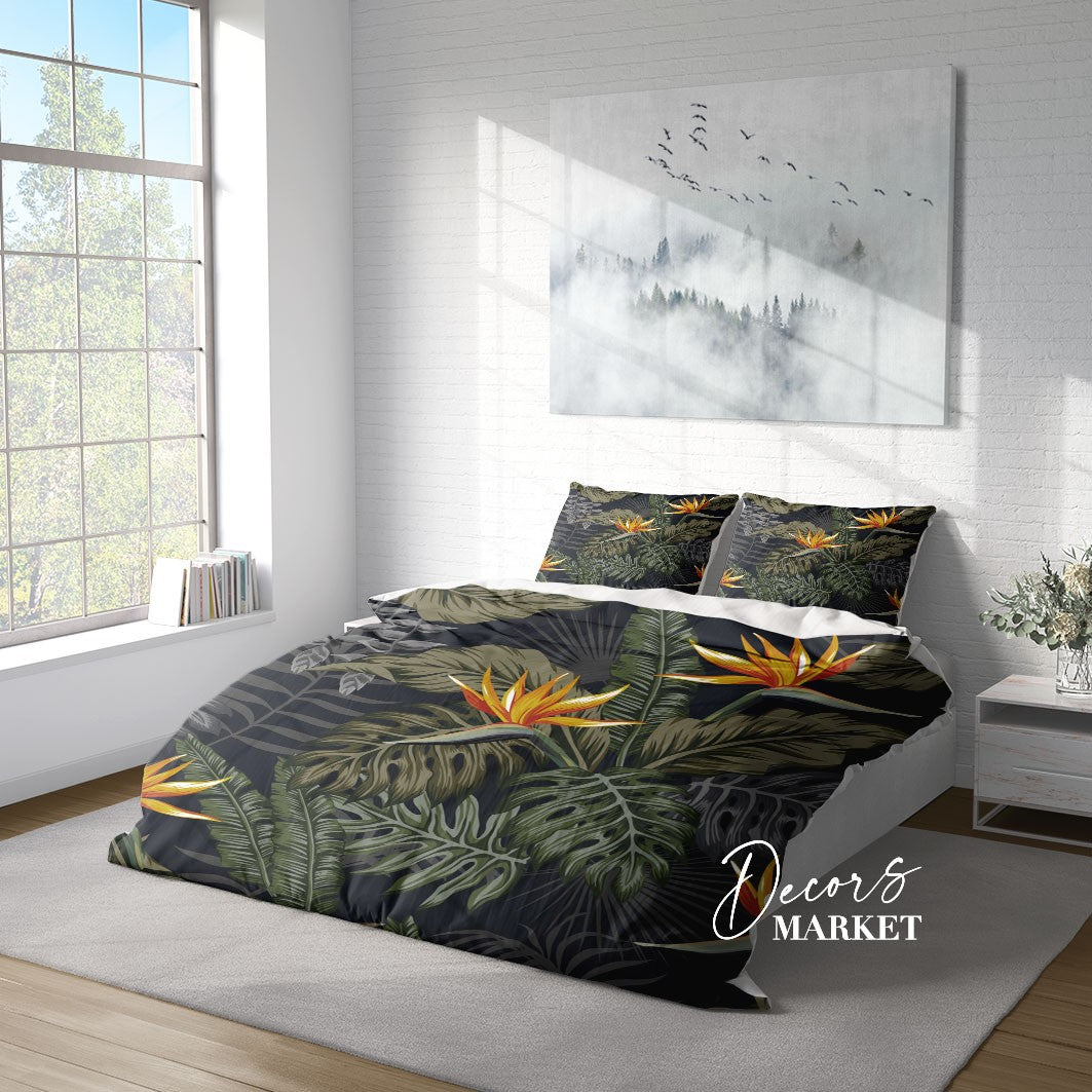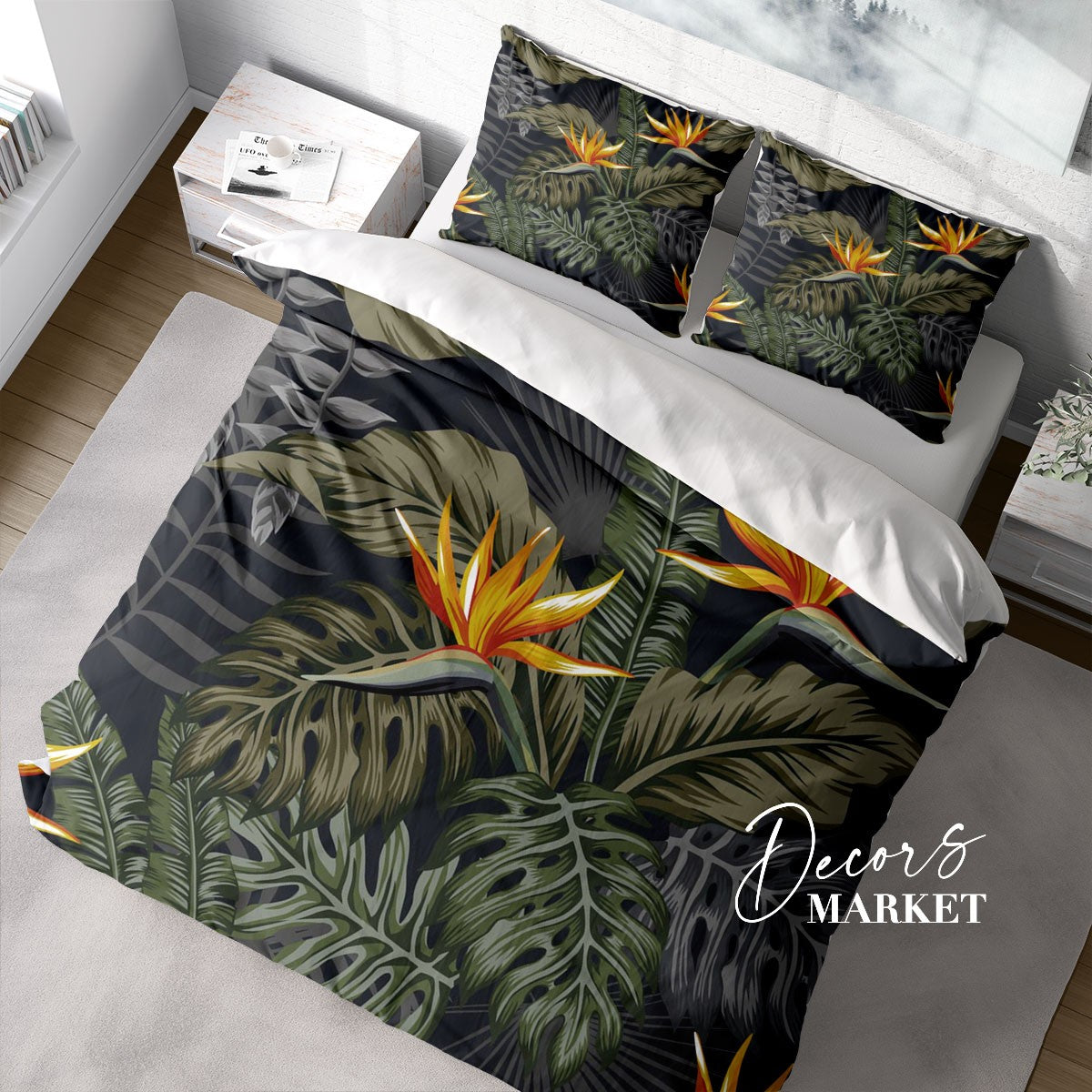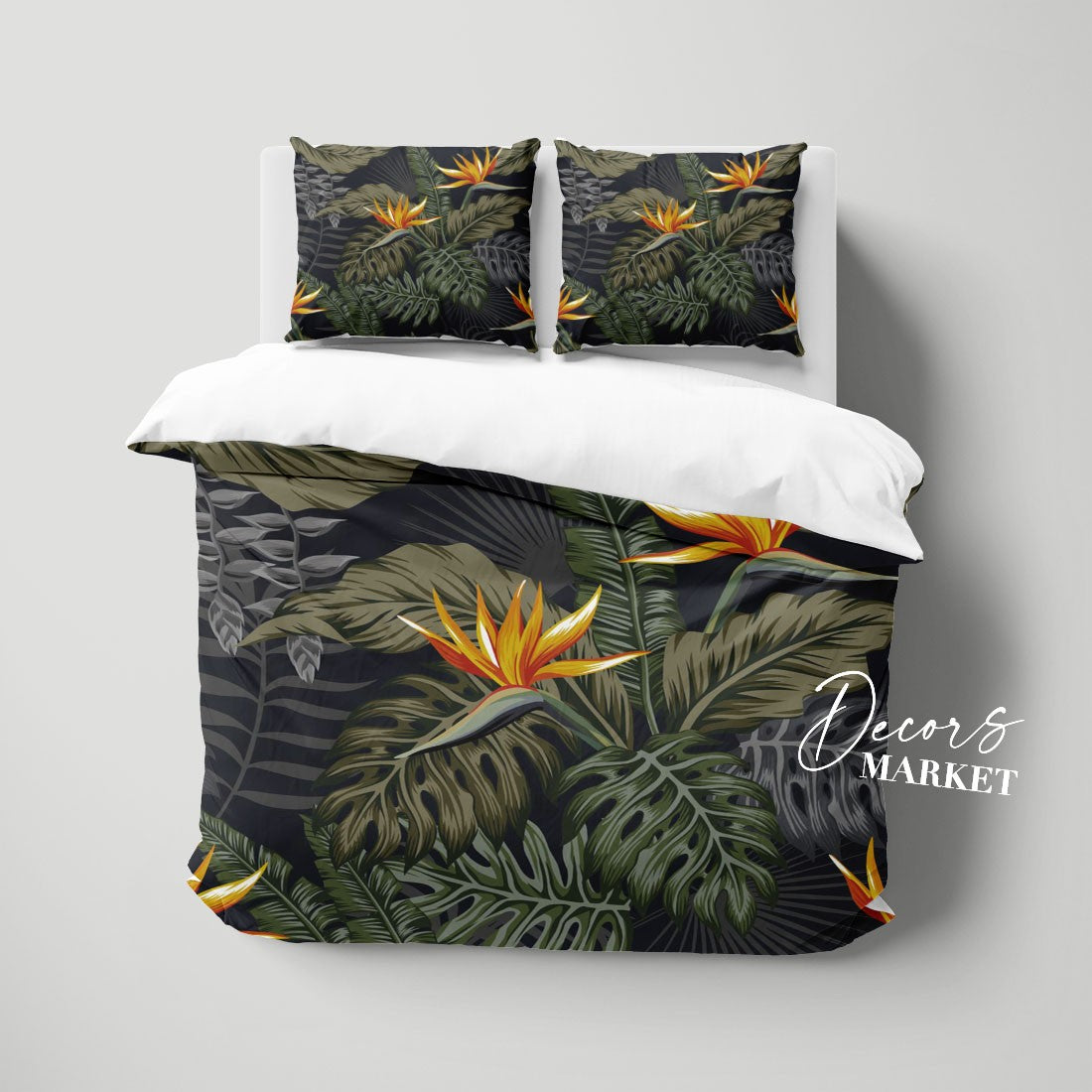 Night Tropical Bird Paradise Duvet Cover Set w Pillowcases, Black Floral Patterns 3D Quilt Cover, Single Double Queen King Size Doona Cover