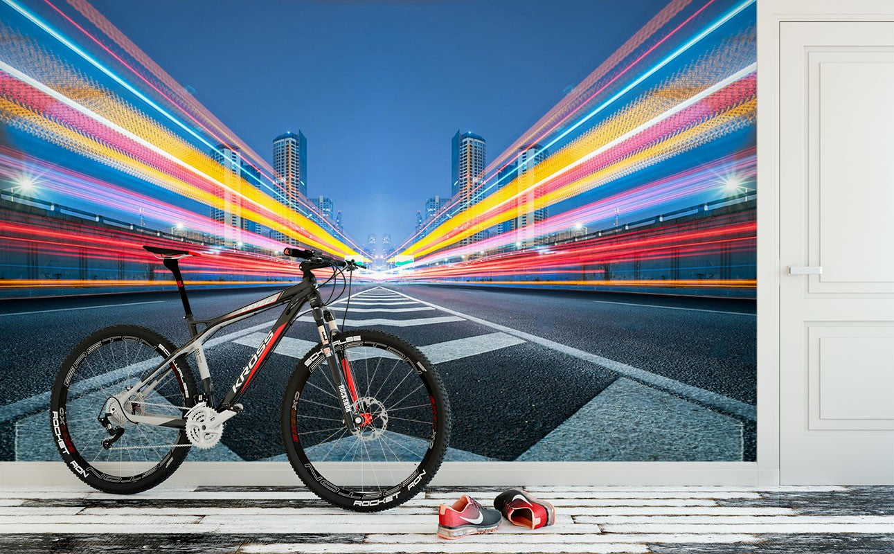 Night View City Streets Black Wallpaper Mural,Self-Adhesive Peel And Stick 3D Wall Decal,Australian Company Wall Decor