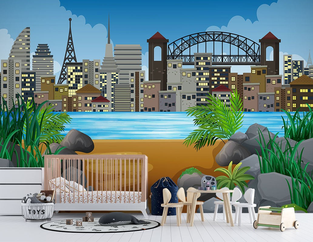 Night View Kids Art For Kids Brown Wallpaper Mural,Self-Adhesive Peel And Stick 3D Wall Decal,Bedroom Australian Company Wall Decor