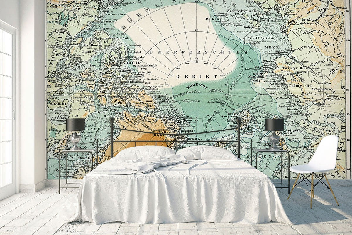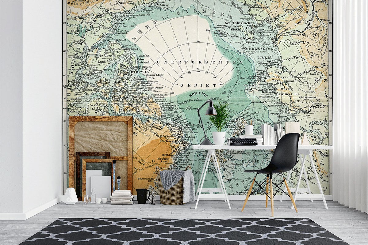 North Pole Map Maps Vintage Map Green Wallpaper Mural,Self-Adhesive Peel And Stick 3D Wall Art,Bedroom Designer Wall Decor