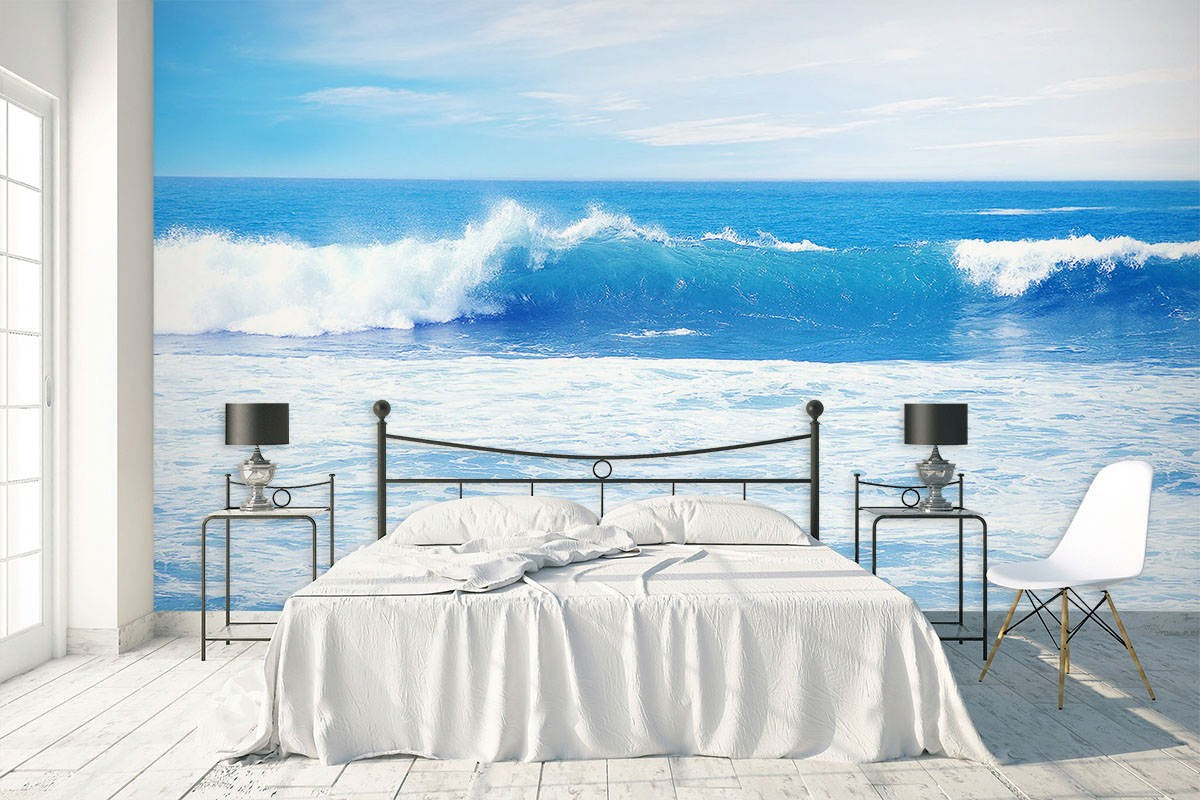 Ocean Wave Beach Blue Wallpaper Mural,Self-Adhesive Peel And Stick 3D Wall Decal,Removable Australian Company Wall Decor