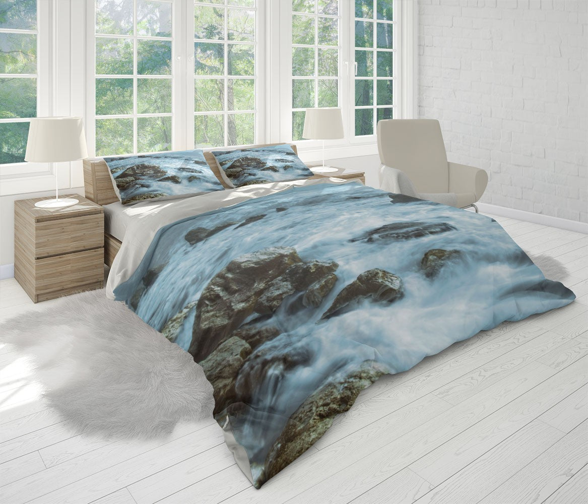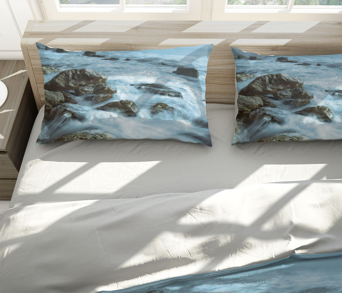 Ocean Wave Beach Blue 3D Duvet Cover Set W Pillow Cover, Single Double Queen King Size, Printed Cotton Quilt Doona Cover 3 Pcs