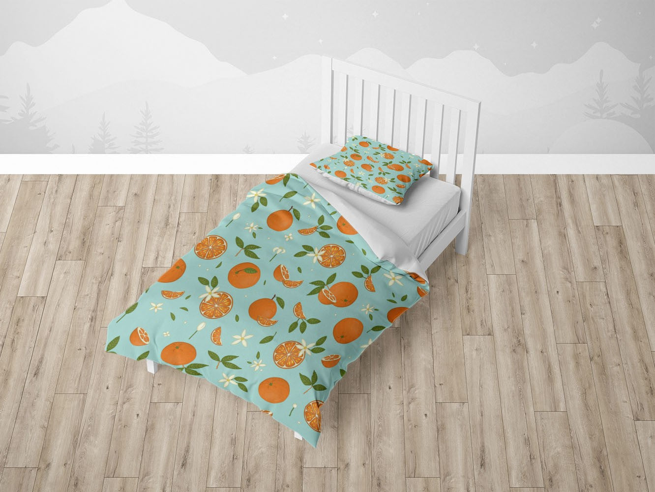 Orange Florwer Duvet Cover Set w Pillowcases, Orange Floral Patterns 3D Quilt Cover, 3pc Single Double Queen King Size Doona Cover