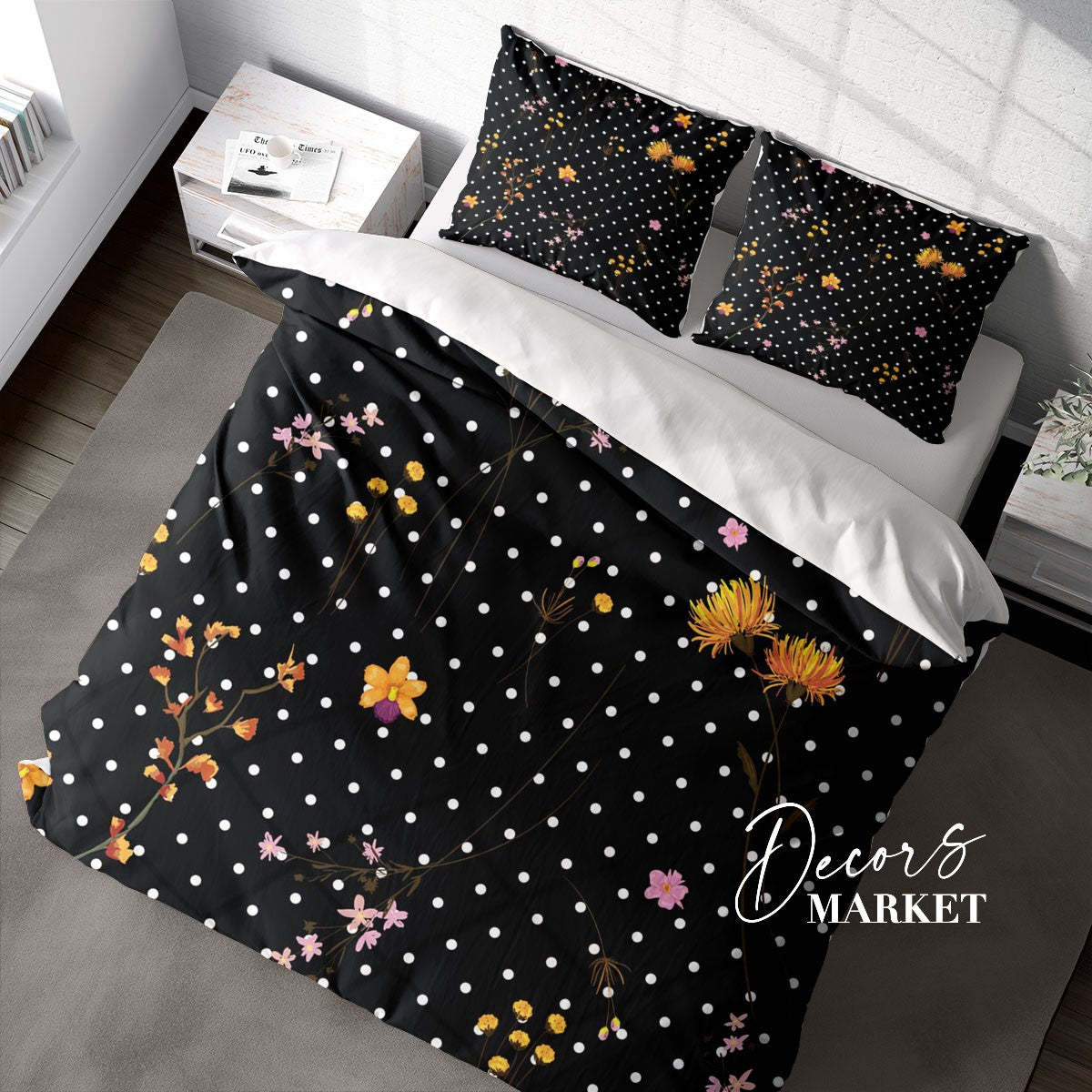 Orchid Thistle Branches Duvet Cover Set w Pillowcases, Dark Floral Flowers 3D Quilt Cover, 3pc Single Double Queen King Size Doona Cover