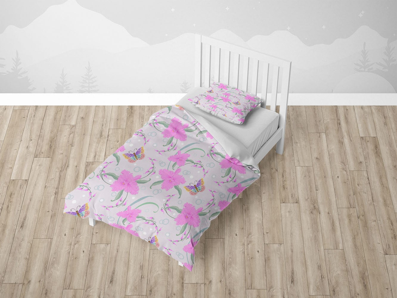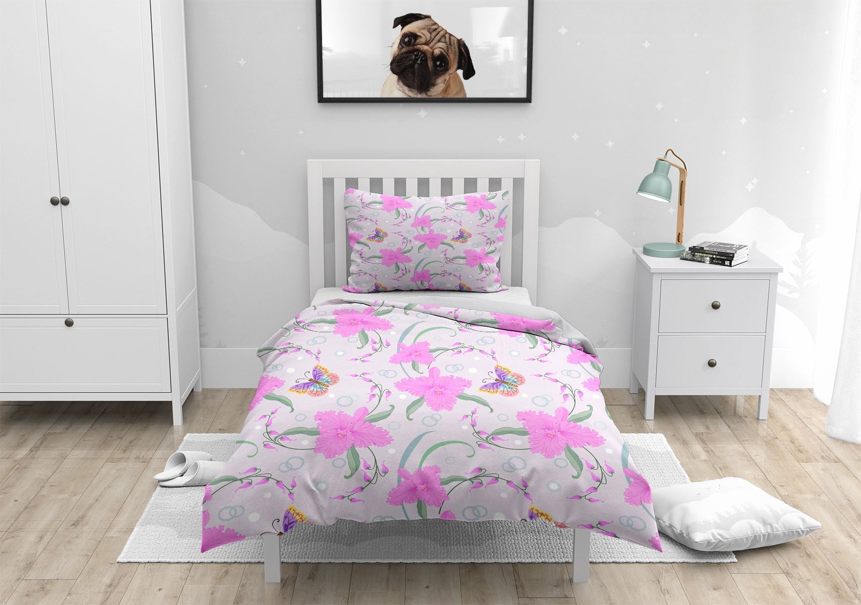 Orchids Butterfly Duvet Cover Set w Pillowcases, Pink Kids Patterns 3D Quilt Cover, 3pc Single Double Queen King Size Doona Cover