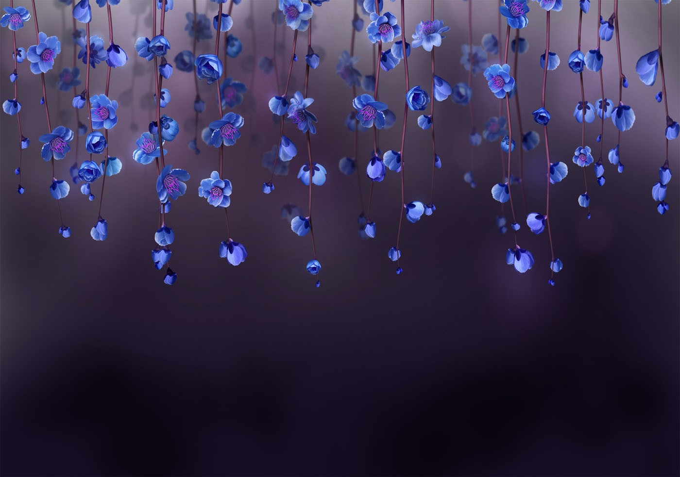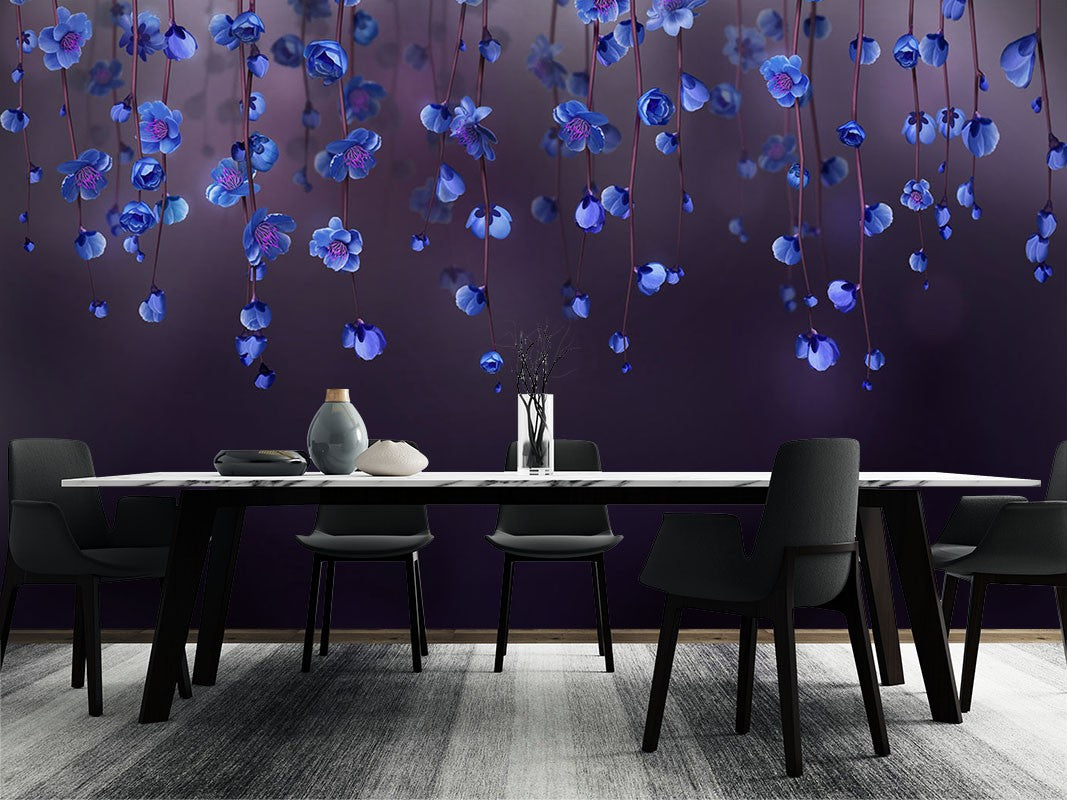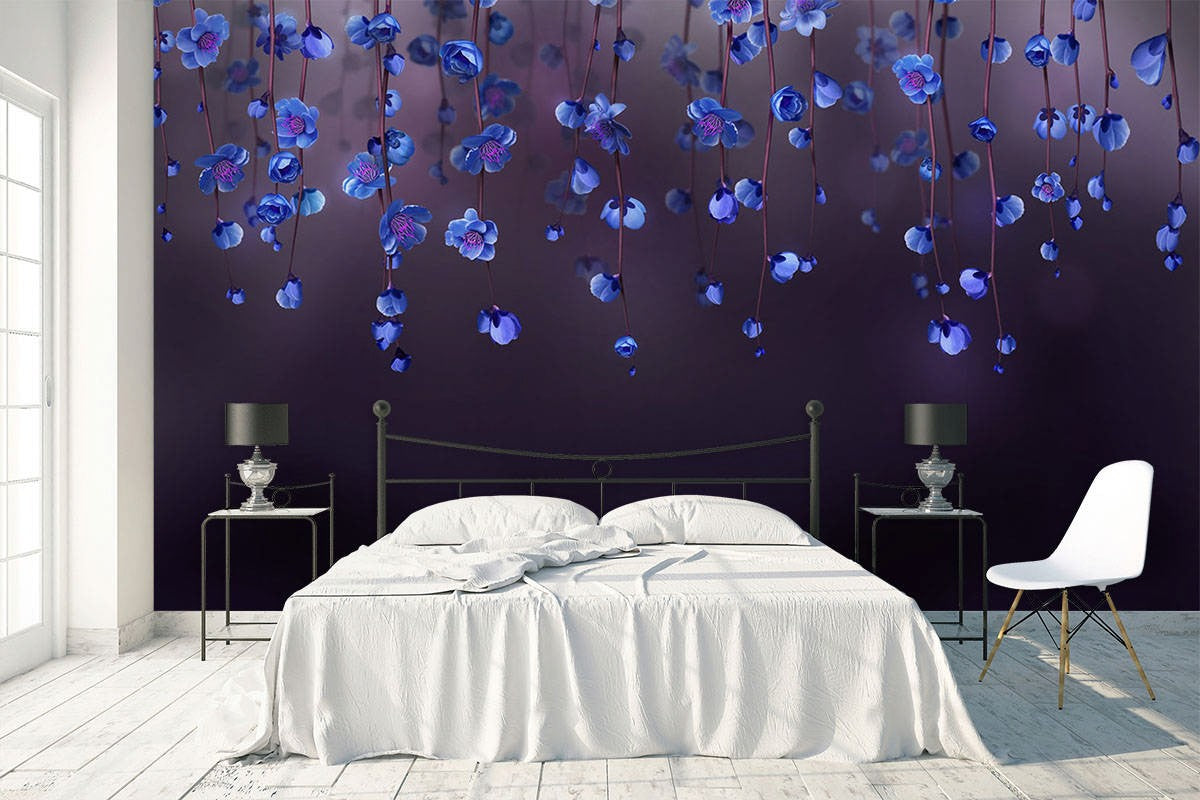 Overhang Dutch Flowers Floral Blue Wallpaper Mural,Self-Adhesive Peel And Stick 3D Wall Art,Designer Removable Wall Decor