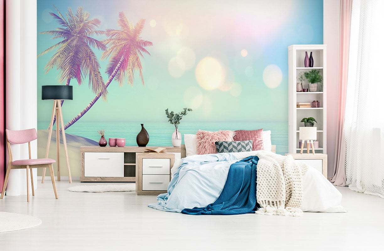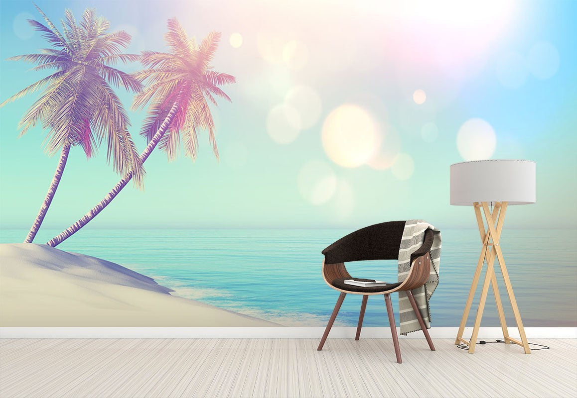 Palm Beach Palm Tree Blue Wallpaper Mural,Self-Adhesive Peel And Stick 3D Wall Decor,Designer Removable Wall Decor