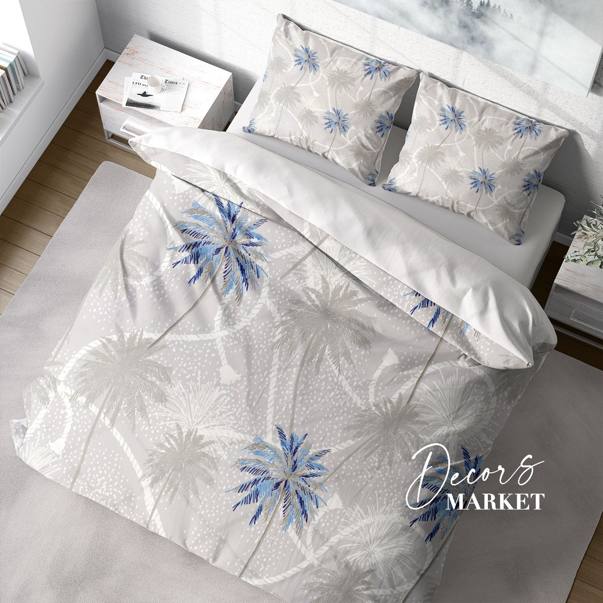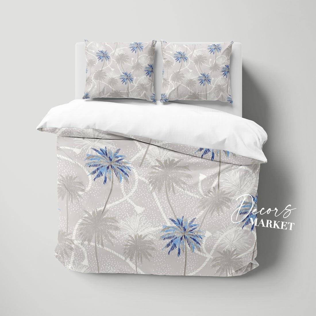 Palm Tree Rope Duvet Cover Set w Pillowcases, Blue Floral Leaves 3D Quilt Cover, 3pc Single Double Queen King Size Doona Cover