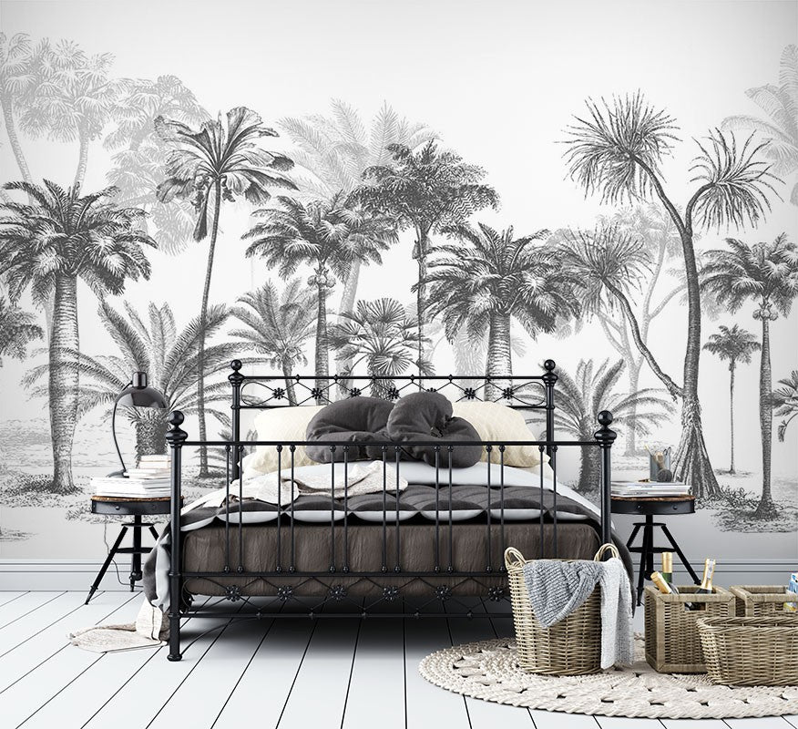 Palm Trees Art Traditional Black&White Wallpaper Mural,Self-Adhesive Peel And Stick 3D Wall Decor,Bedroom Designer Wall Decor